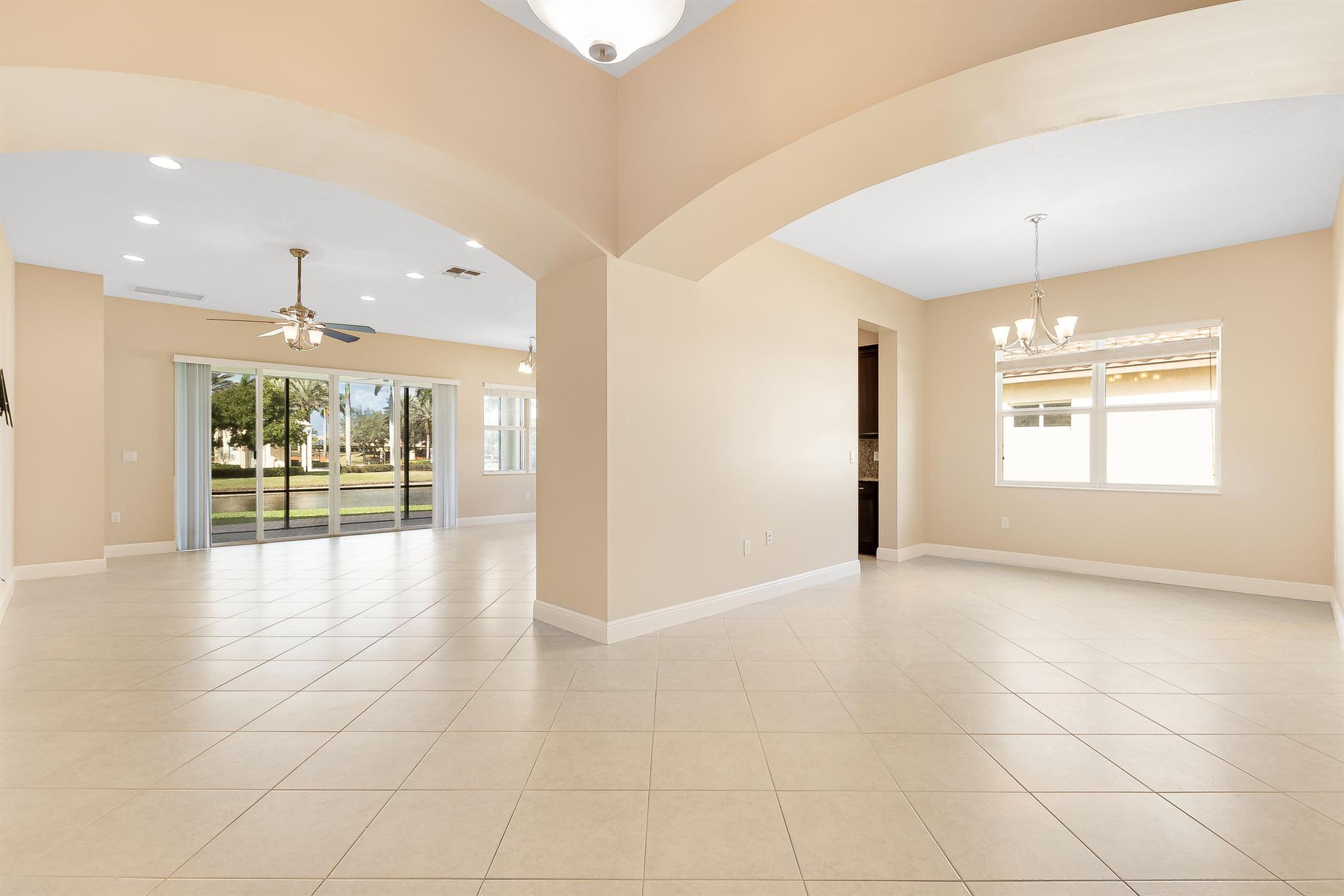 Elaborately appointed with impact glass windows. A full height granite backsplash in the kitchen. stainless steel appliances and 18 inch tile throughout except carpeted bedrooms. Enjoy your extended screened in patio and your water view. A beautiful place to relax.Close to I-95 and the turnpike. Shops and restaurants are within easy access. The beach is nearby . The Kravis Center and the Convention center also.