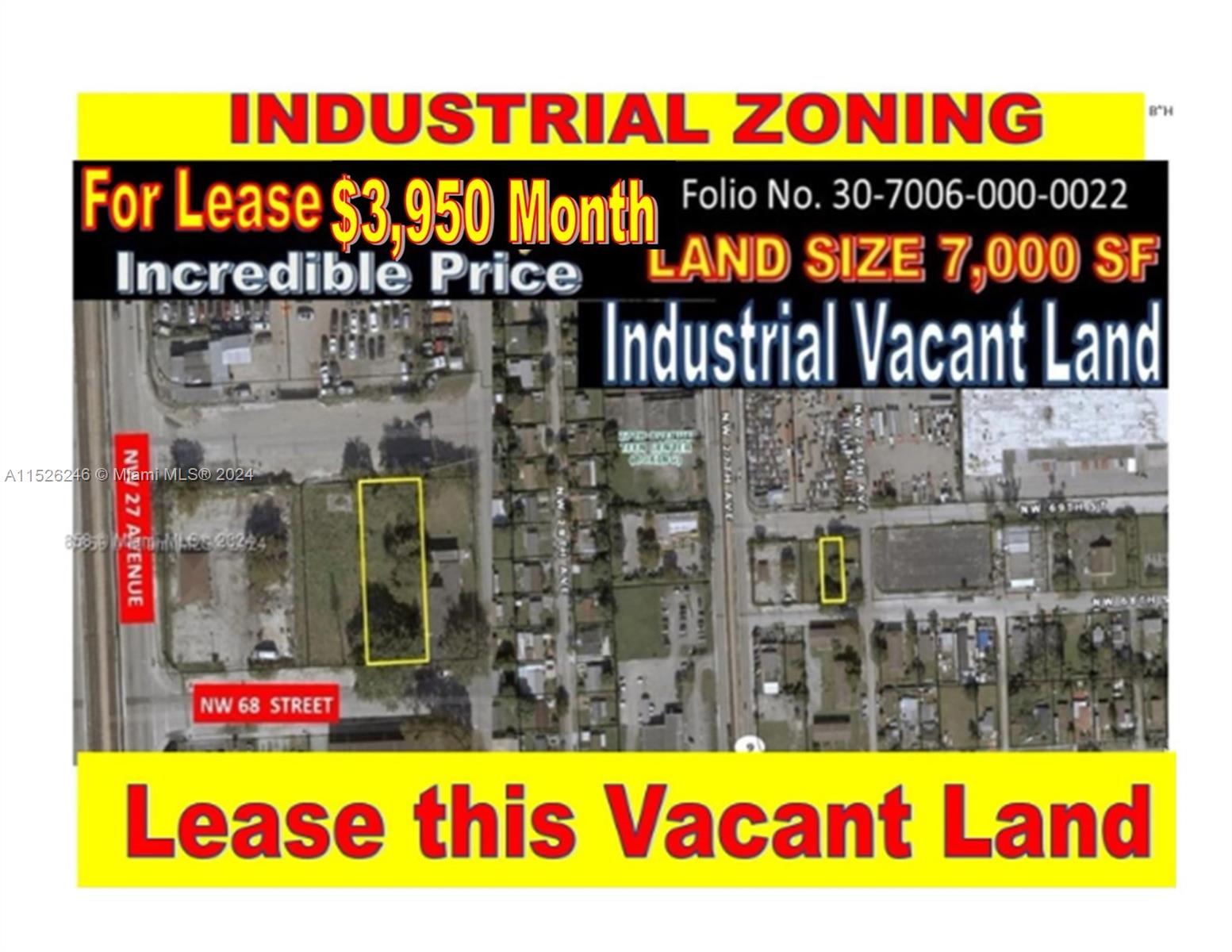 Great Opportunity to Lease a Vacant Land of 7,000 SF with an Industrial Zoning, next to NW 27 Avenue Super Location. Lease this Land for $3,950 per month
