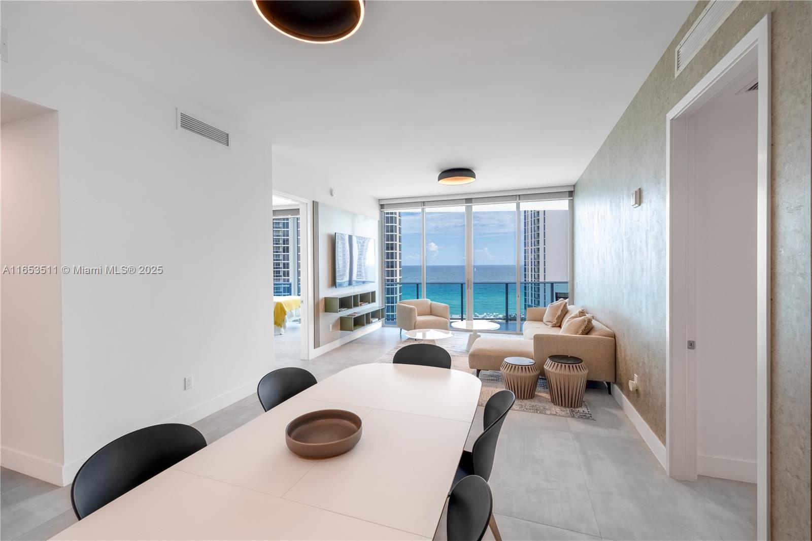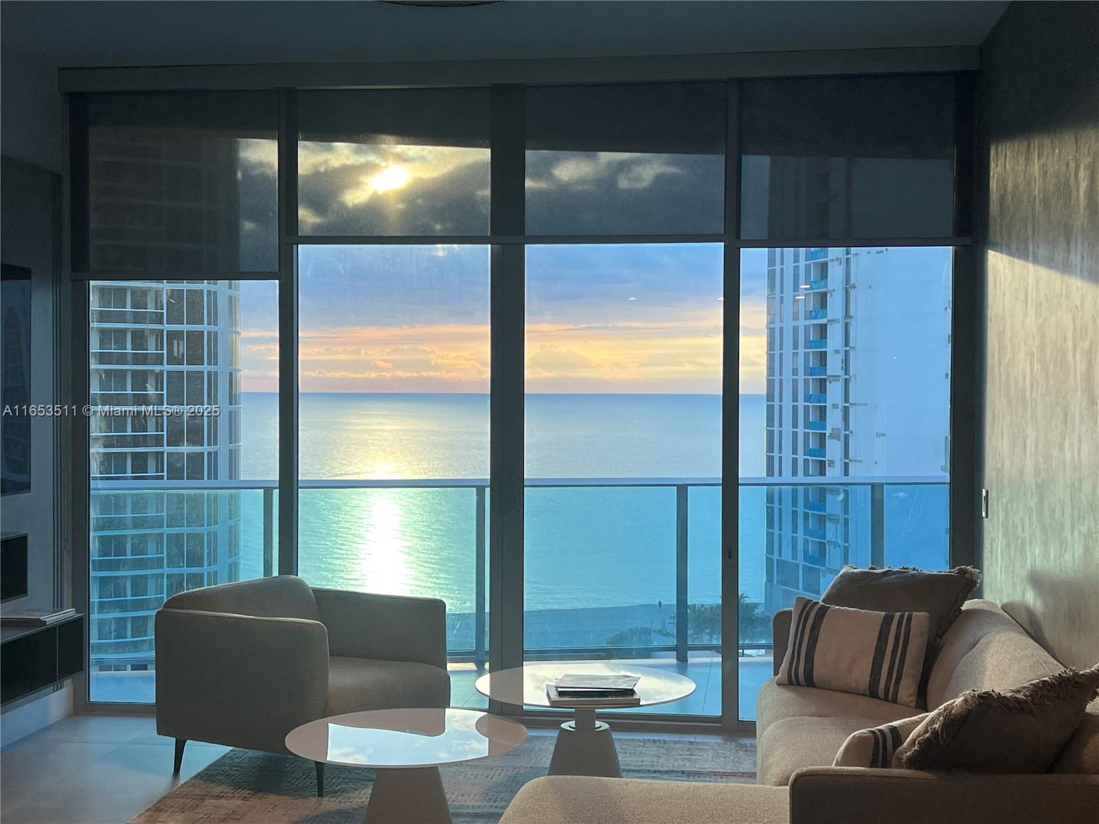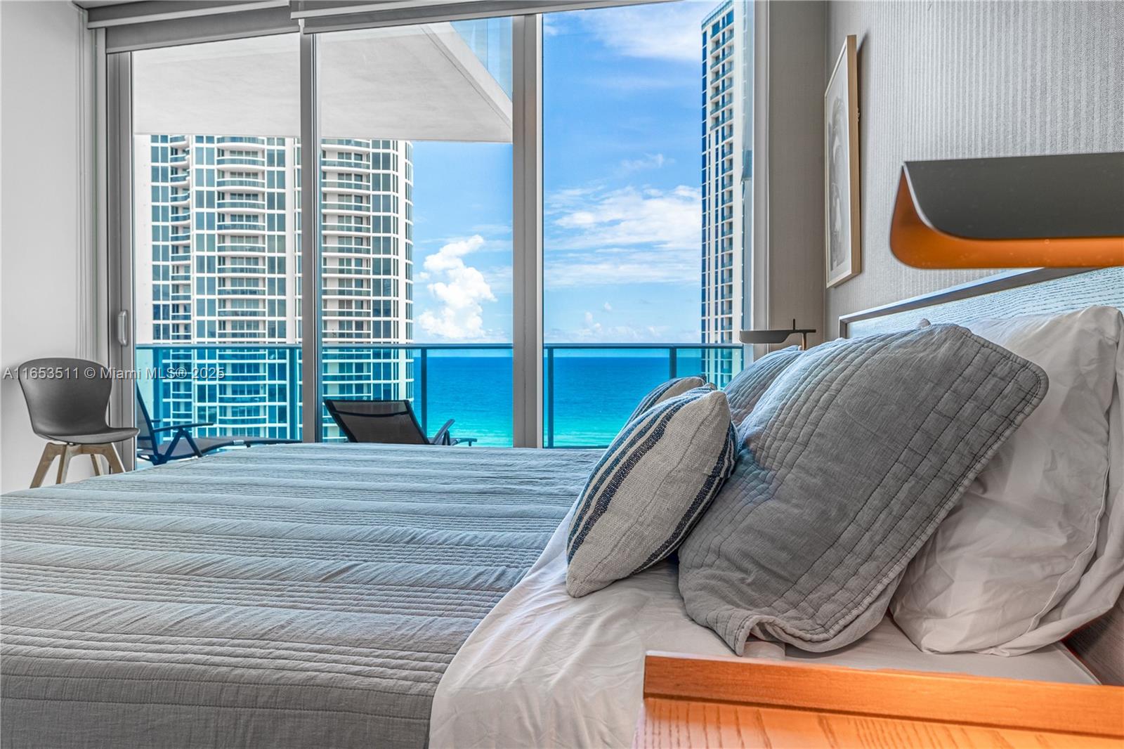 Oceanside living at its best! Marvel at the captivating 180° views of Sunny Isles skyline and the turquoise Atlantic Ocean from your oversized balcony or relax inside in this gorgeous designer finished 2 bedroom 2.5 bath condo located at the heart of Sunny Isles Beach. Private elevator leads to the hallway of this beautiful, chic condo featuring modern finishes, large built in closets, high end appliances, fully stocked kitchen, shades and blackouts to ensure your privacy.Aurora is a brand new luxury building is positioned just across the beach, offers resort style amenities, security, kids room, gym, business center, 24 hour front desk. Walk to shops, restaurants, beach, playgrounds. Bal Harbour Shops & Aventura Mall are just a short drive away. AVAILABILITY: starting MARCH 26Th 2026.
