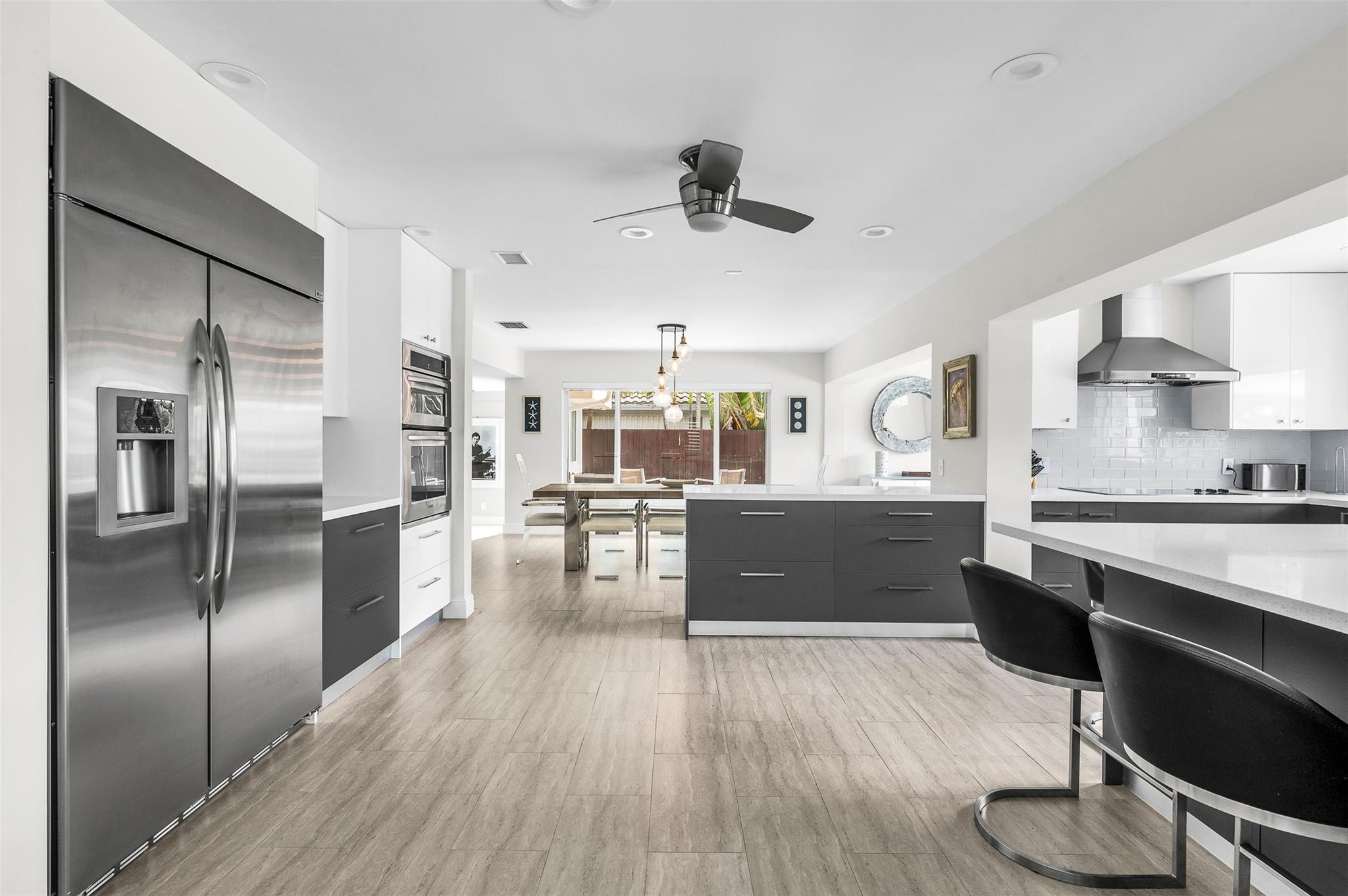 Fully furnished waterfront house with a heated pool. This 2 level house features an en-suite bedroom on the first level and 4 bedrooms on the second floor. Boasts with a fully equipped kitchen, laundry room, designated office space, pool table ans spacious living area, TVs in every bedroom, etc. House boasts with stunning water views, heated pool, brand new pool deck, summer kitchen, boat dock and outside entertaining area, 80 ft waterfront on a deep water canal and no fixed bridges. Tenants are welcome to bring boats. Nestled in a quiet family friendly neighborhood, minutes from the beach, restaurants and shopping. In high rated school district . Rental rates vary from $20,000-25,000/month , depending on the season. available May-mid January