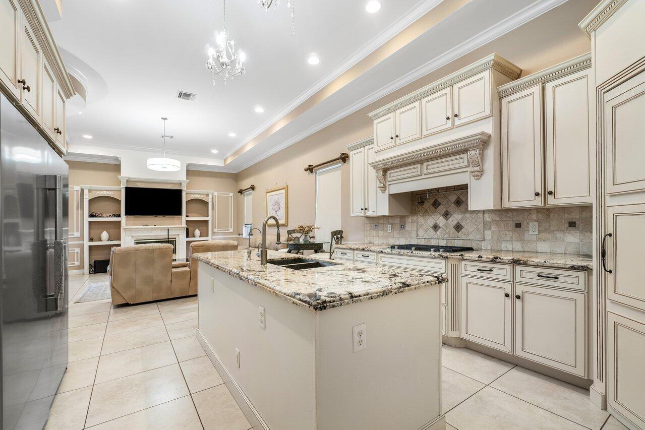 Welcome to your dream home in the heart of unincorporated Palm Beach County! This luxurious estate boasts 4 bedrooms, 5 baths, and an ideal blend of space, privacy, and elegance. The main house features 3 bedrooms, 4 baths, and a versatile office, while the detached 1-bedroom, 1-bath mother-in-law suite offers the perfect private retreat for guests or extended family. Step inside the main house to find a bright and inviting living room with large windows that flood the space with natural light. Custom moldings and elegant shadow boxes on the walls and ceilings add a touch of sophistication. The open-concept gourmet kitchen is a chef's dream, complete with stainless steel Sub-Zero-style appliances, granite countertops, a gas stove with a convenient pot filler, and a seamless fl