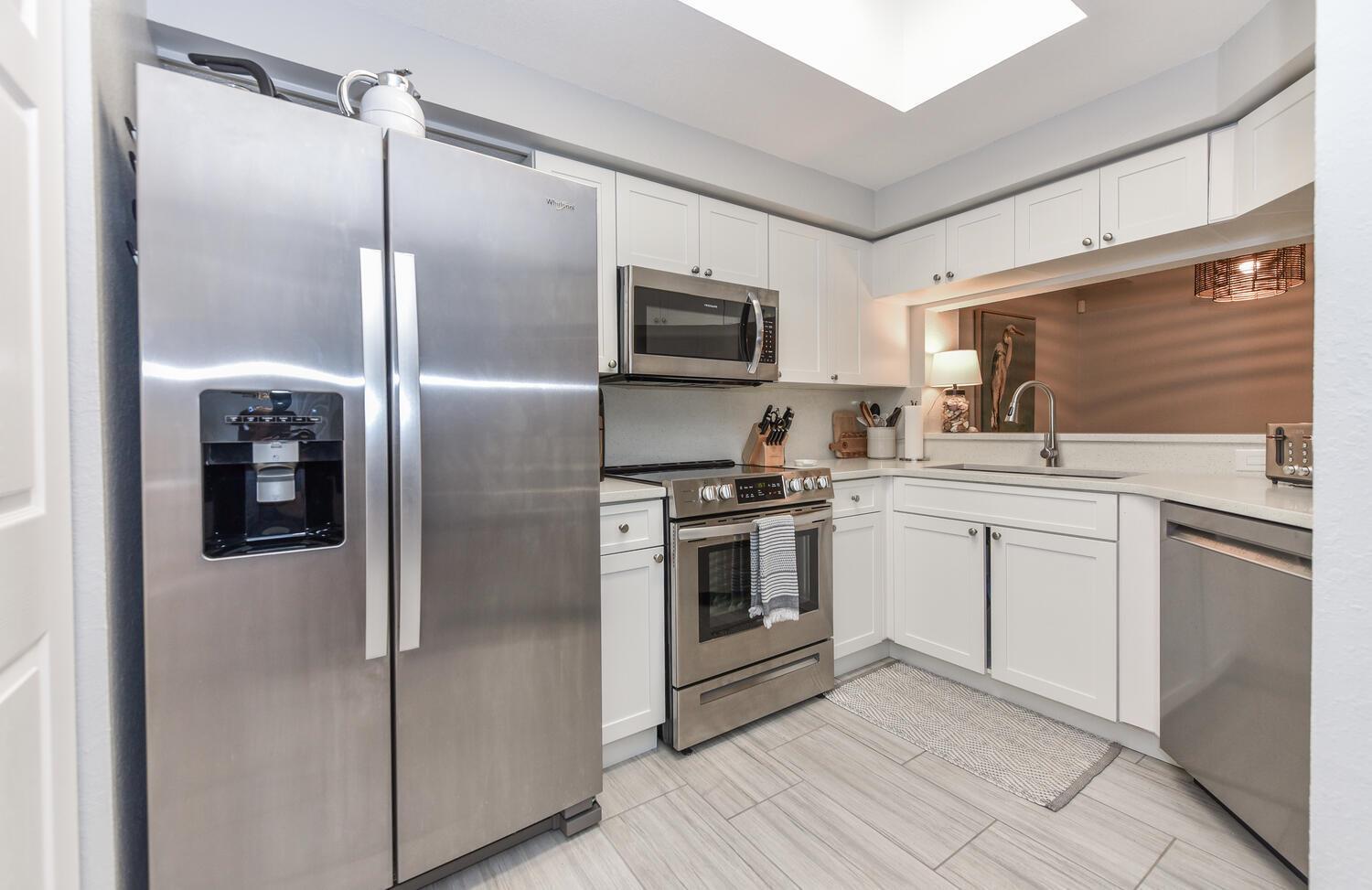 Enjoy this Off-season DECEMBER AND EARLY PART OF JANUARY! Enjoy this Extremely Special and Highly Upgraded 1st Floor condo with High End furnishings .Great amenities, clubhouse, swimming, sauna, racquetball, tennis courts, pickleball Set on 70 lushly landscaped acres, San Matera is the ideal address for those seeking the convenience of urban amenities combined with seclusion at home. This resort-style clubhouse has a fitness center, meeting and conference rooms with bar and fireplace, media center. San Matera's outdoor sports and recreation facility features a swimming pool, sundeck and Jacuzzi, Pickleball, tennis and racquetball courts. No Smokers. Trucks OK