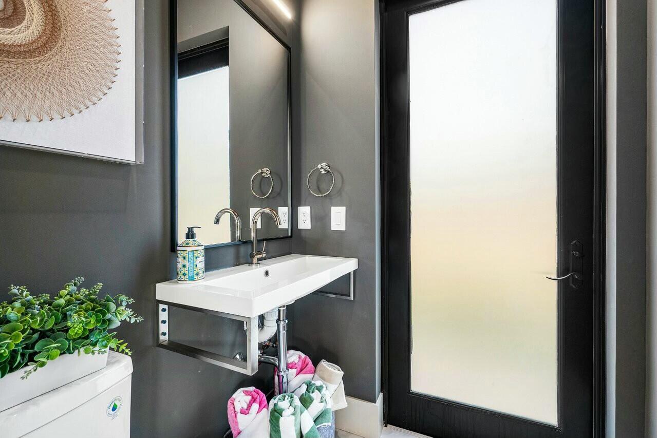 Your new lifestyle will exceed your expectations in this eloquently designed contemporary beach estate. Its offerings include; a grand gated entry with plenty of parking for friends and family, and 3 garage spaces with plenty of height to add lifts for more luxury car space. Upon entry of the oversized double custom doors you will be greeted with 25 foot ceilings boasting ample natural light, and highlighted by custom floating staircase and modern yet elegant fixtures. The north side of the estate features a meticulously designed custom kitchen with 12 foot ceilings, highest quality appliances and fixtures, thoughtfully designed to provide you with ease for entertainment and indoor outdoor Florida living. The south end of the main level includes an inviting in-law suite withoversized