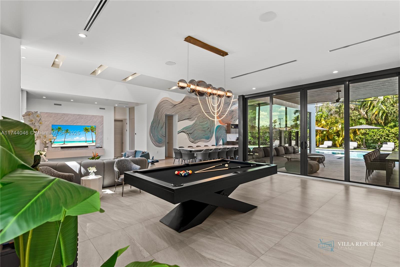 This stunning five-bedroom modern home blends luxury and functionality with a sleek, open-concept design. Expansive glass walls and high ceilings create a bright, airy atmosphere, connecting the indoors seamlessly to the backyard oasis. The spacious gourmet kitchen, equipped with high-end appliances and a large island, flows into the living and dining areas, perfect for entertaining. Outside, a sparkling pool with a sun deck invites relaxation, while a half basketball court offers recreation for all ages. Each bedroom is designed for comfort, with the master suite featuring a spa-like en-suite bathroom and a private terrace overlooking the pool. Available for short term! Seasonal, Monthly, Weekly, Daily. FOR RENTAL RATES, PLEASE CONTACT LISTING AGENT