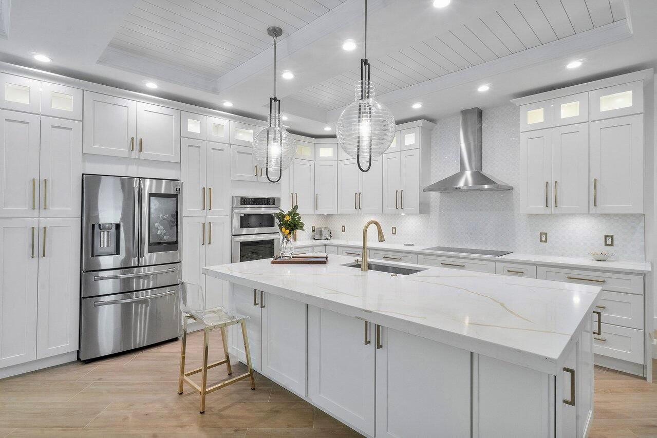A perfect seasonal rental nestled in the exclusive gated community of Regents Place. This fully furnished, completely renovated Single Family Pool Home features an open light and bright floor plan with 3Bd, 2.5 Bh and 2 car Garage boasting 2072 SF of Living Space. The Chef's kitchen is equipped with top of the line LG appliances, 5-burner cooktop, quartz countertops, oversized island and custom cabinetry -- perfect for entertaining! Grand Master Suite with elegant marble tile in bathroom that extends into the over sized frameless glass shower, dual sinks and separate tub with freestanding tub faucet.Built in closets in every bedroom and all new impact windows and floor to ceiling sliders. This desirable neighborhood is minutes from Bear Lakes Country Club and main highways.