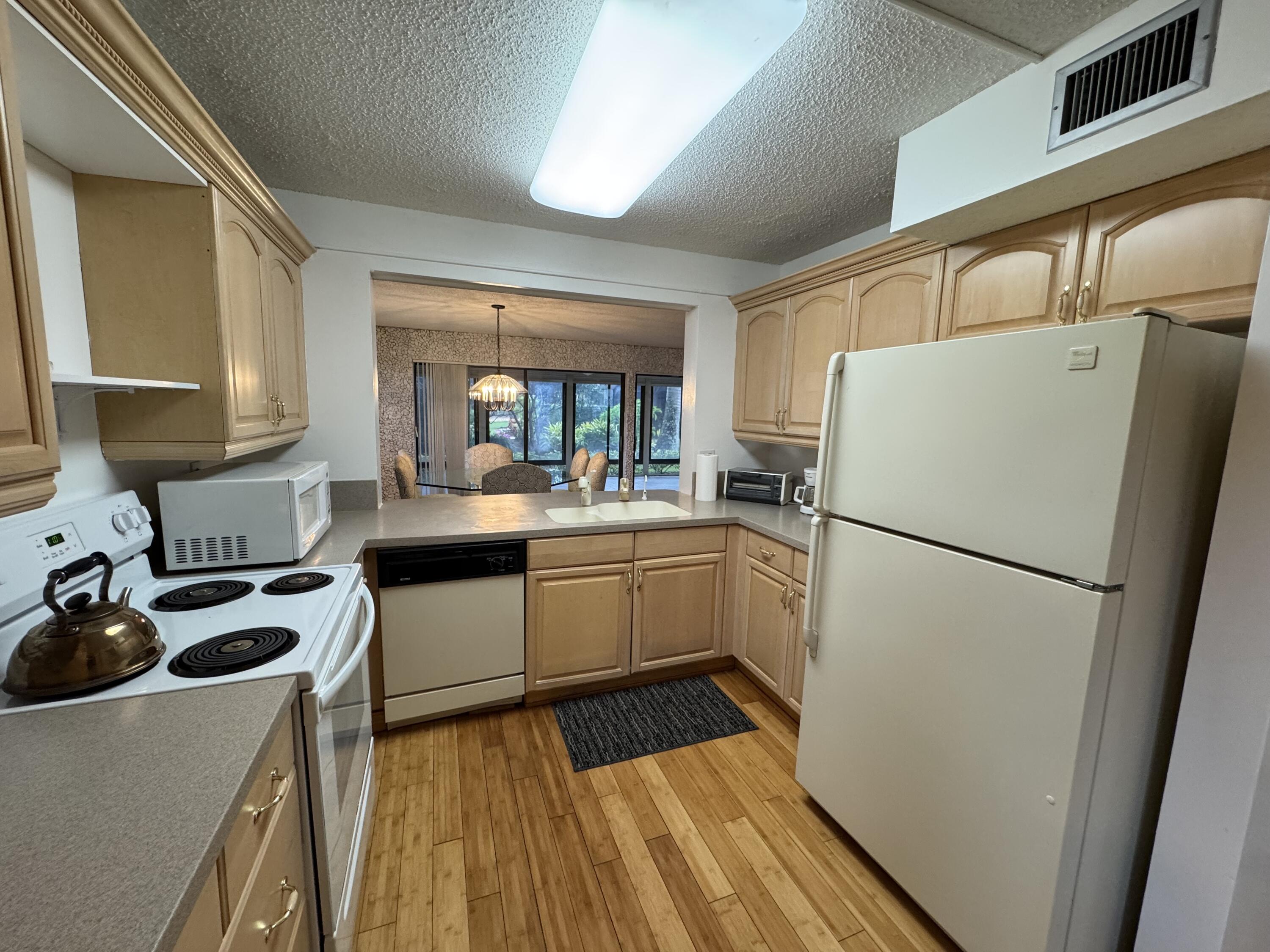 ACTIVE 55+ COMMUNITY - This 3/2, 1st floor condo lives like a home. Very spacious, large screened, enclosed porch with a door which leads right to the community pool. Washer/Dryer in unit. Neutral colors. Partially furnished. Furniture can stay or be removed. Plenty of closet and storage space. Carpets will be cleaned before move in.