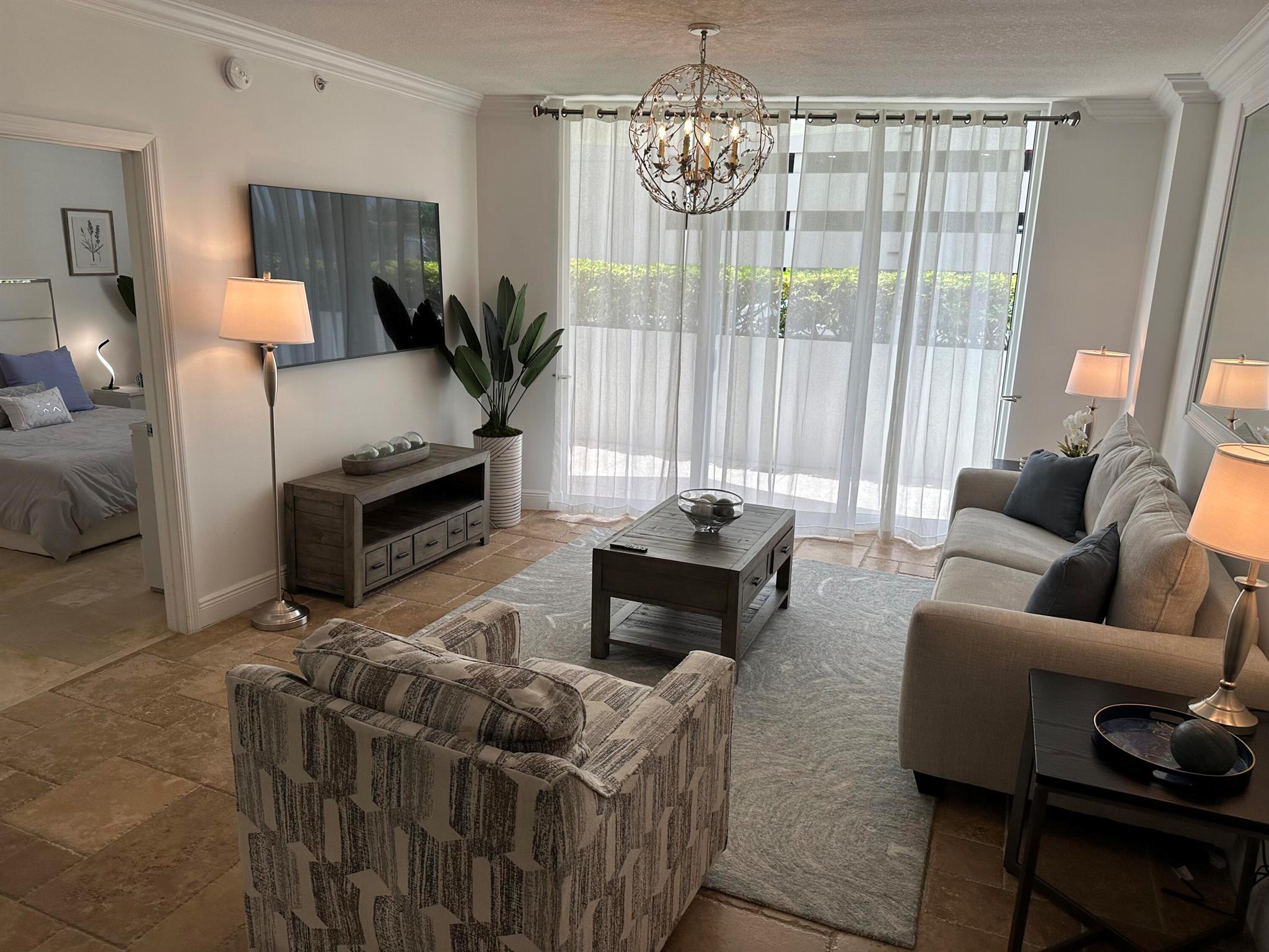 Discover a stunning three-bedroom, three-bathroom condominium at the prestigious Slade, where luxury meets comfort. This beautifully furnished, fully turnkey unit is ready for you--just bring your suitcase and immerse yourself in the vibrant South Florida lifestyle! Enjoy a modern, fully tiled space (no carpets) featuring two spacious master suites, while the third bedroom is cleverly designed as an office complete with a cozy sleeper sofa.Positioned ideally within the building, the oversized balcony/patio boasts direct private access to the inviting Sunrise pool and hot tub, perfect for relaxation. Just minutes from the best of downtown and Palm Beach's exquisite dining and shopping,