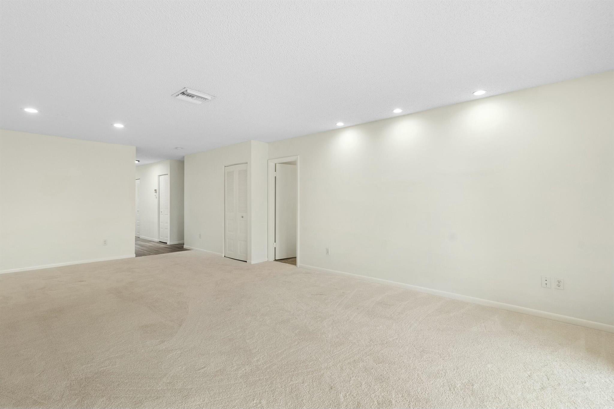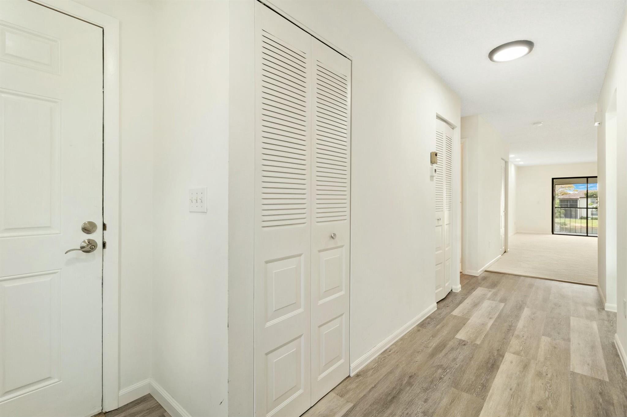55+ Community. Updated lake-view condo in a non-mandatory club community with a new roof (2022). Features all impact windows except sliders, a 2-year-new A/C, and newer stainless steel appliances. Freshly painted with brand-new carpeting. The spacious primary suite has a fully updated bath with a great shower, granite counters, new flooring, and three oversized fitted closets plus a linen closet. Additional storage throughout, including under the stairs. Newer in-unit washer and dryer, white wood blinds, and two paddle fans. Prime parking spot in front of the home. Minutes from fine dining, shopping, and major highways. Glades section includes its own private pool and clubroom.