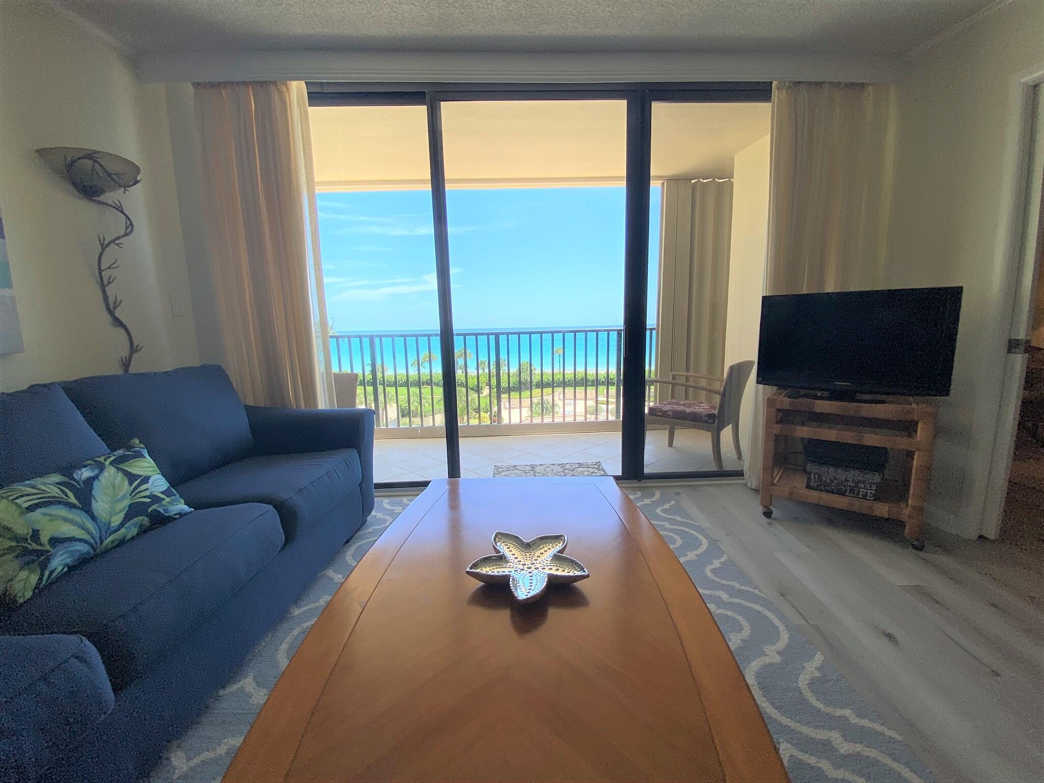 Open Nov, Dec, and Jan 2026. 2 month requirement. Rented for Feb - April 2026. No planned building work during season. Building renovation is done! Directly on the beach in Jupiter with a sensational 5th floor due east ocean view. This 2 bed / 2 bath condo is well cared for by the local owner. New large screen smart TVs in 2025. King bed in the primary bedroom, and twin trundle beds in the guest room (trundle can convert into a king size or remain 2 twins). Washer and dryer inside the condo. Heated pools, spa, fitness room, 24-hour manned guard gate, secure garage parking, tennis, social activities, and of course direct beach access. Located a few minutes from many local restaurants and shops. Great location for those that like to bike, walk or just relax by the pool or beach.