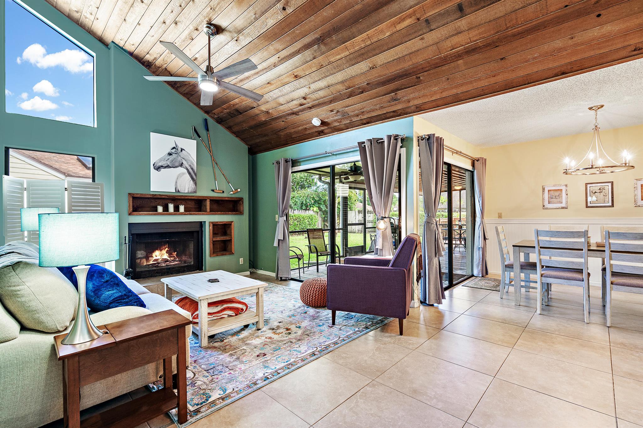Great seasonal rental in the quiet Tree Tops community. This single family home features two bedrooms, a living room, dining room and huge fenced in yard with screened porch and wrap around porch. Tree Tops has a community pool and is centrally located in Wellington. This rental is nicely furnished, primary bathroom recently updated and is a lovely place to spend your winter months. Available starting August. Pets welcome with approval. Don't miss out on this one, it is great! The landlord is fantastic too!
