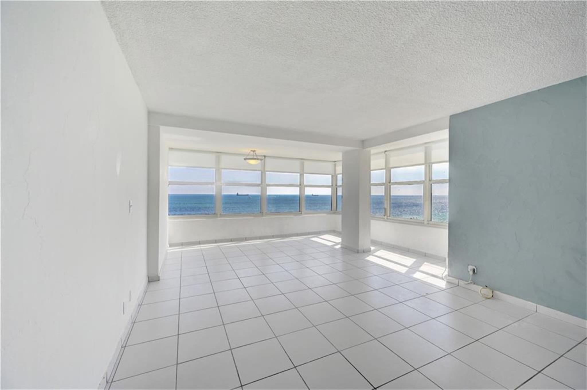 Steps to the beach! Bright, spacious, 2 bed / 2 bath, unfurnished apartment featuring stunning ocean & intercostal views in a beautiful oceanfront building in the heart of Fort Lauderdale's Central Beach, between Las Olas and Sunrise Blvd. Close to the finest Dining, Shopping (Galleria mall), activities (Beach Yoga, Sea Cycle, Morning Walks/Rides, Paddle boarding, Pickle Ball, Picnics...), and entertainment (Elbo Room, Hard Rock...) that Fort Lauderdale has to offer. This residence features a large bright living and dining room area, an open kitchen with granite counter tops, 2 walk-in closets and plenty of storage space. Approximately 1,118 sq ft. Includes 1 parking space, hot water.