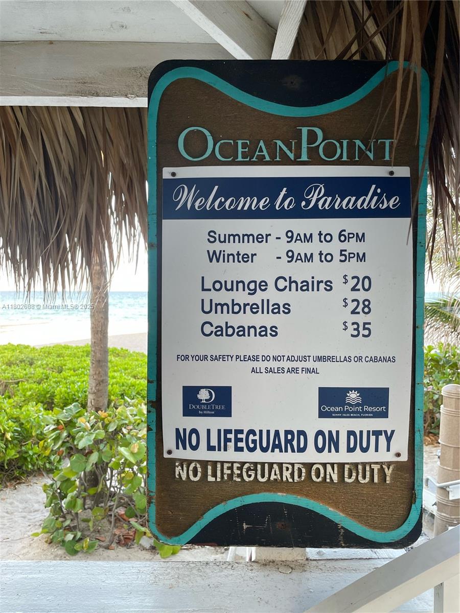 BEACH STUDIO FOR RENT! Located inside the HILTON - Ocean Point Beach Club Hotel in Sunny Isles Beach, enjoying all the amenities Hilton has to offer: Gym, Spa, Bar, Starbucks Coffee, Restaurant, Indoor Bar & an Outdoor Tiki bar, Beach Service (chairs and towels are free of Charge). In-Unit Private Washer & Dryer! The unit has a direct ocean view from its private balcony, new tile floors, a small kitchenete, microwave and a Mini Refrigerator. It also has a beautiful modern bathroom with a new shower. Located Acrosss the street from a shopping plaza with a supermarket, restaurants, bars, coffee lounges and everythijng you need. This Unit is simply the perfect Studio On the Beach!