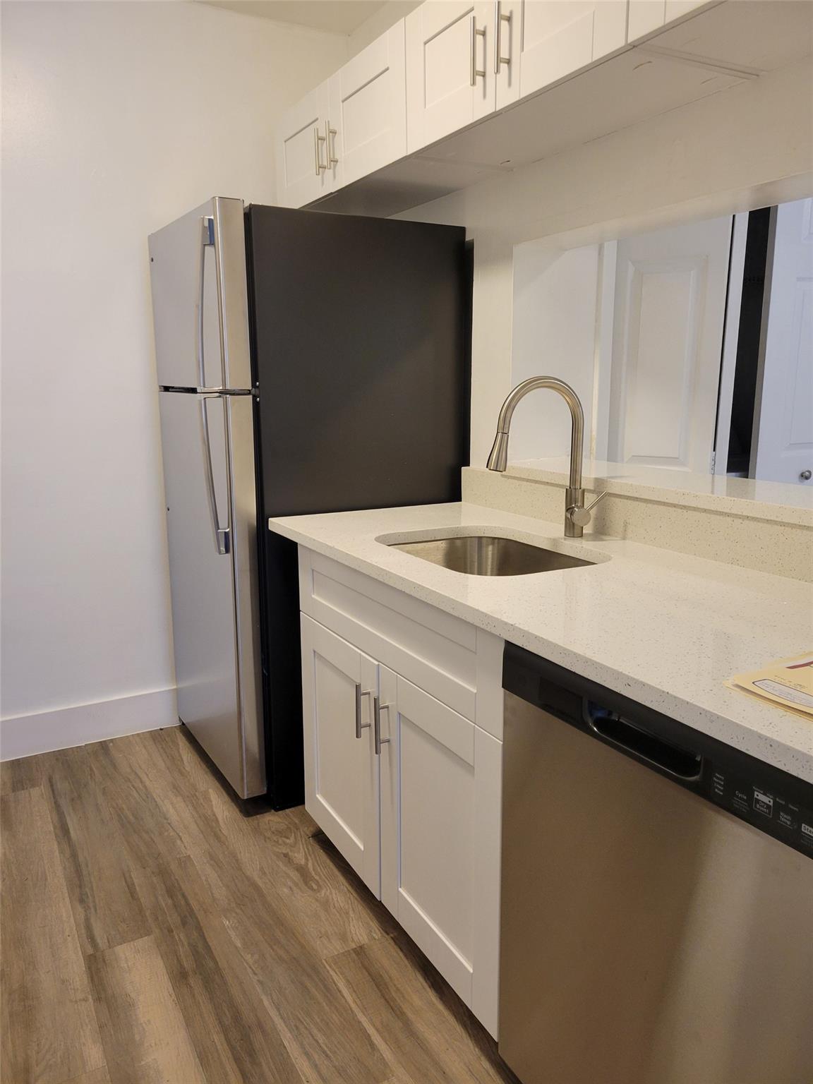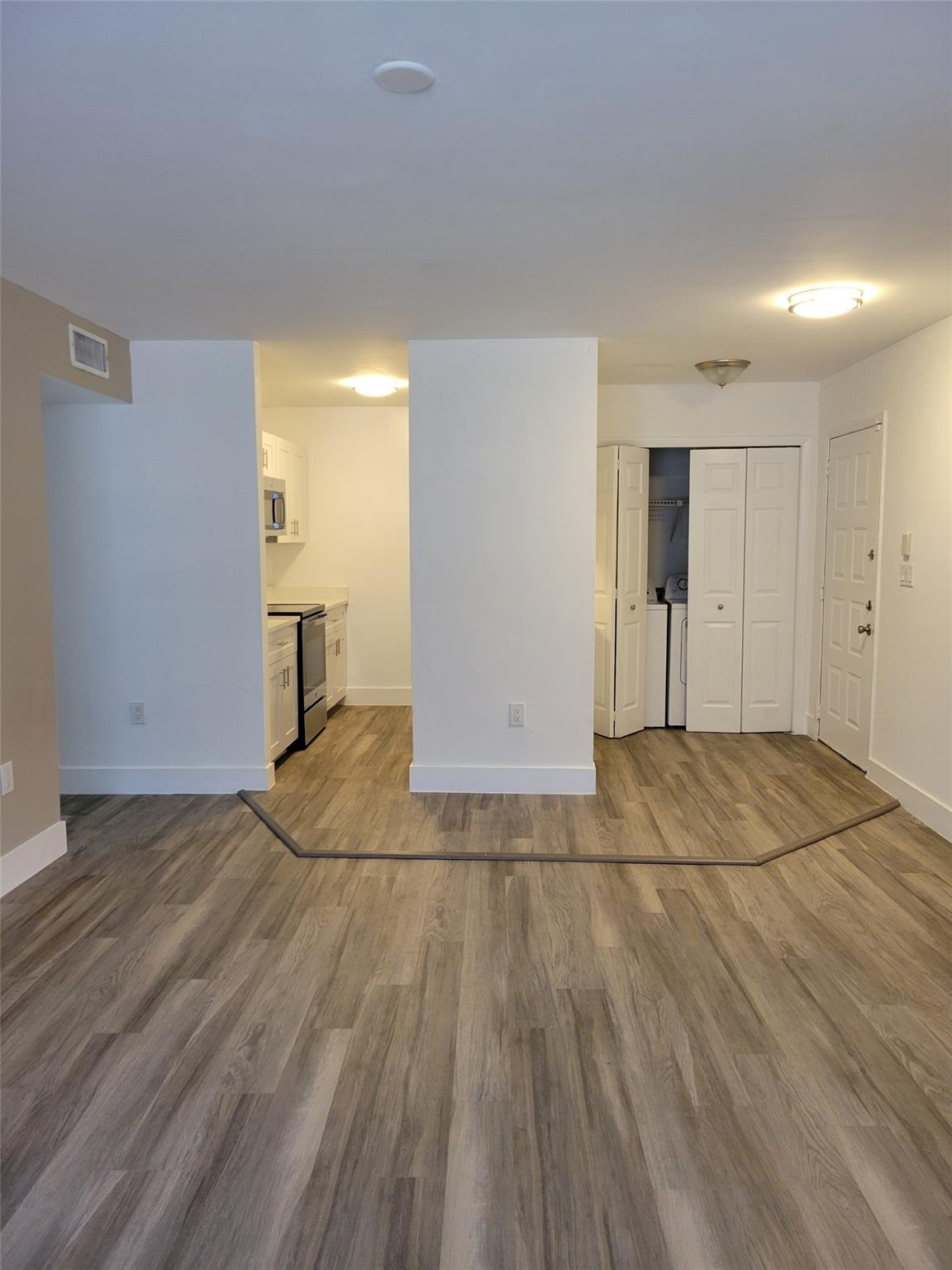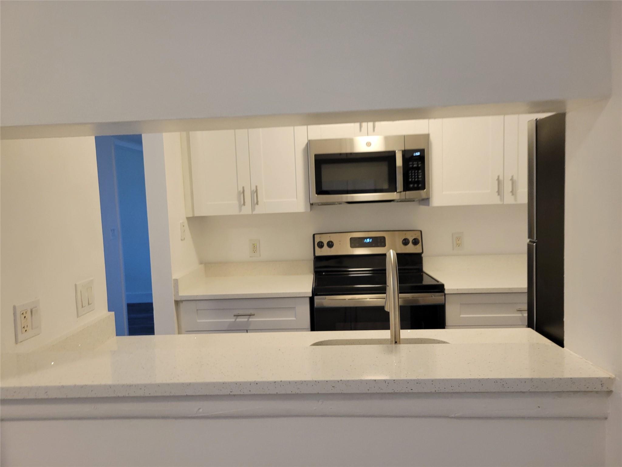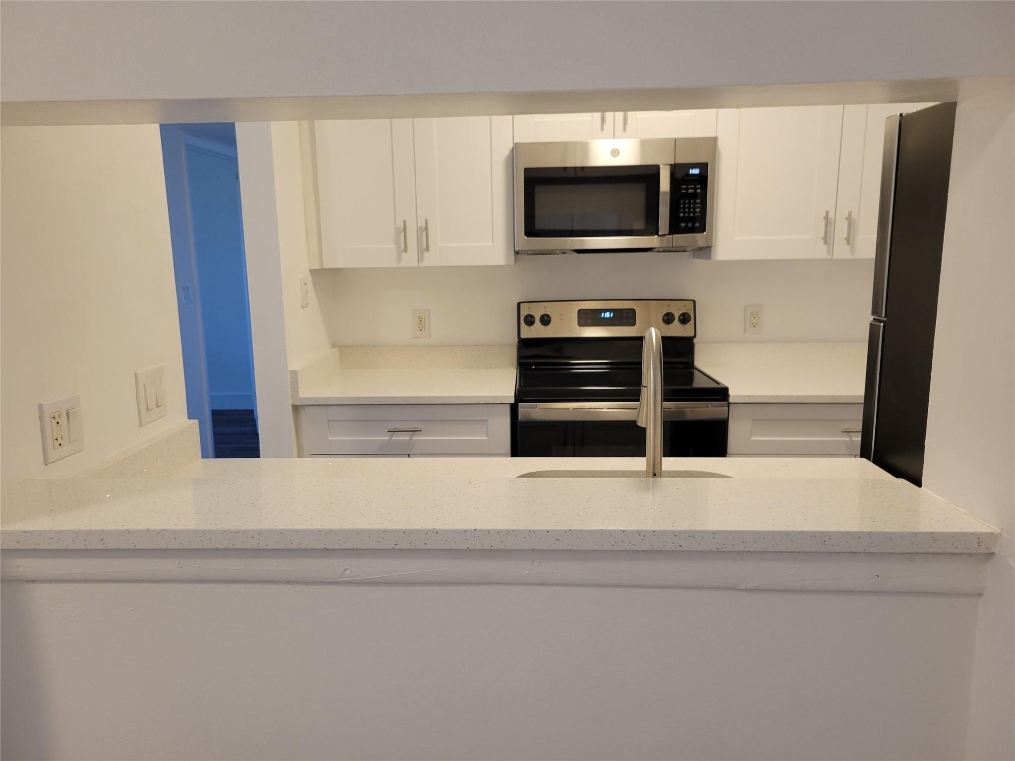 Upgraded 2/1 baths in gated community. This first floor unit is light and bright. Open floor plan with a modern kitchen. Quartz counter top, white cabinets with stainless steel appliances. New washer and dryer in the unit. Steps away from the community pool, fitness center, jogging path and tennis court. Close to beach, shopping and highway. Water and sewer included. Only ONE parking space available per unit - NO EXCEPTIONS! HOA has garage for rent for a reasonable fee if you need extra parking. Landlord may allow a small dog under 15lbs with non refundable fee $325. HOA requires a 630 credit score !