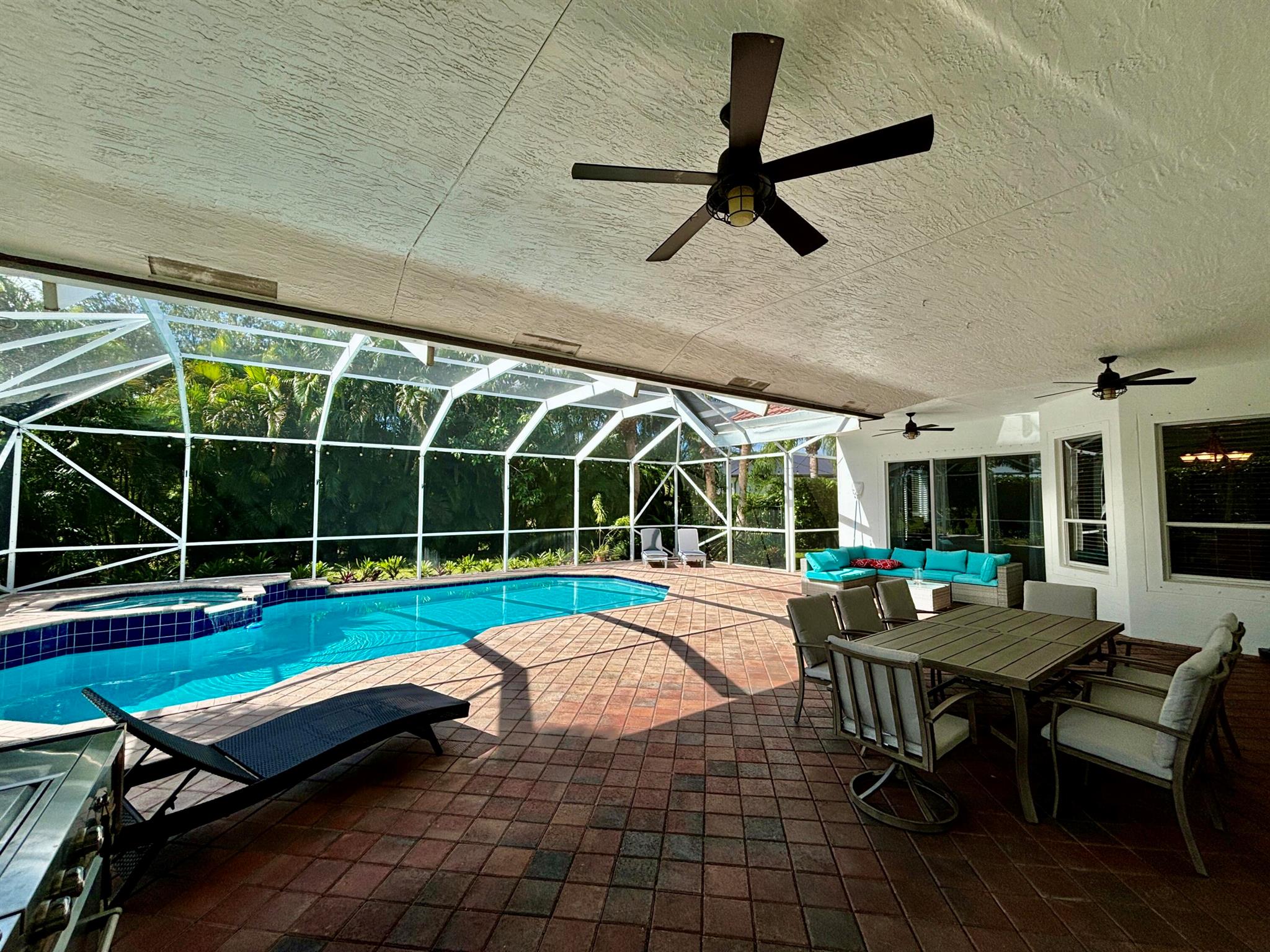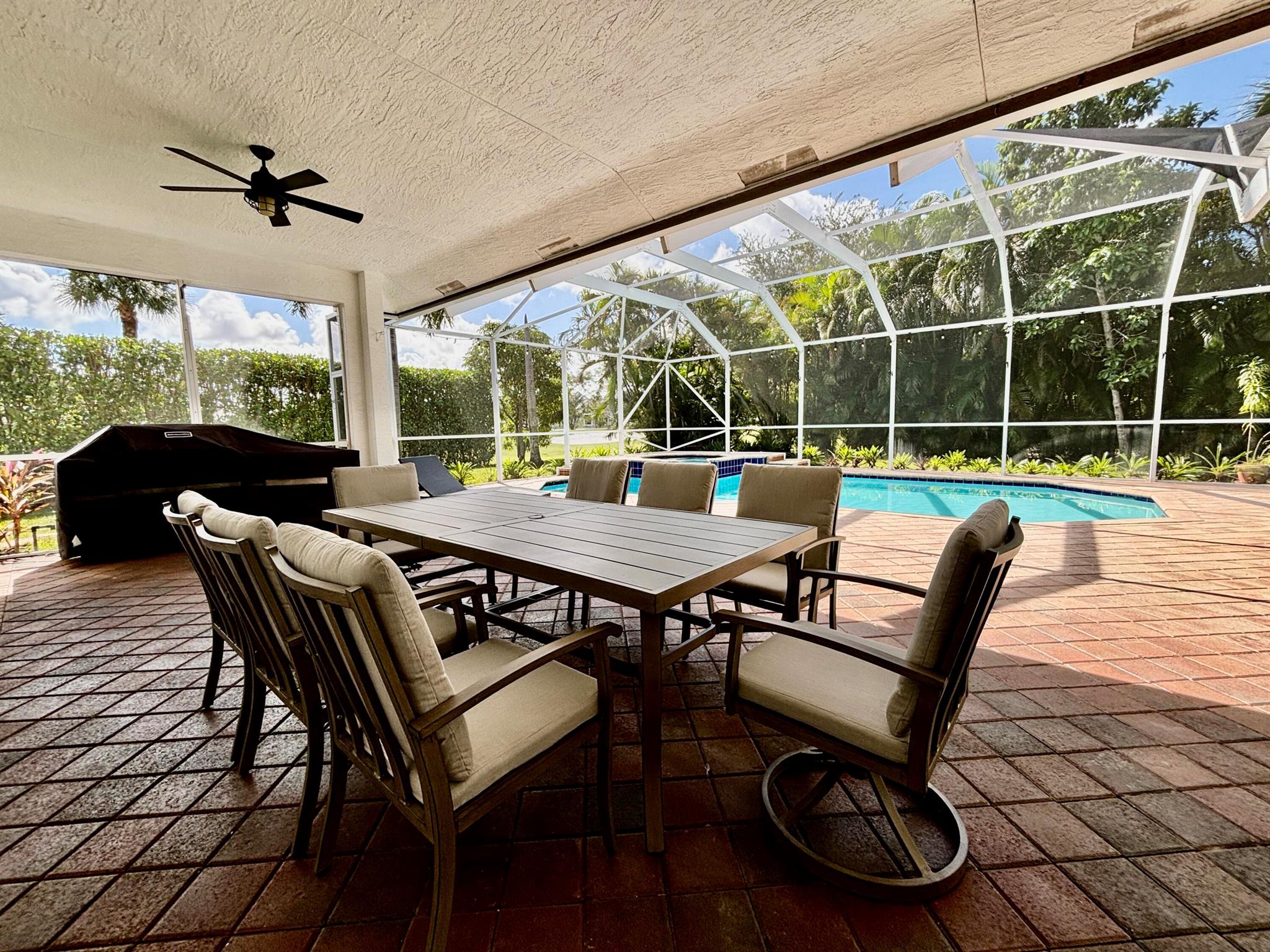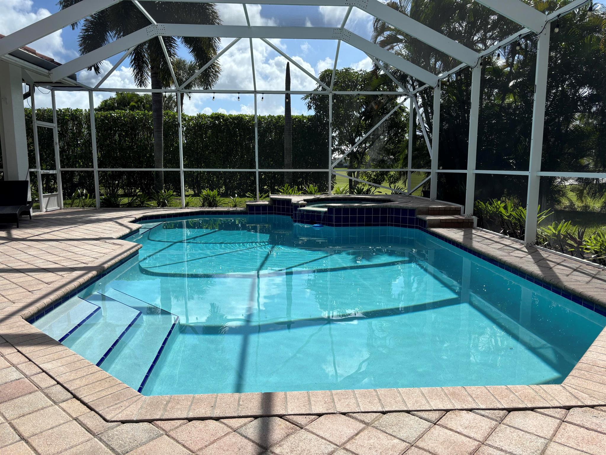 Available 5/1/2026. Fully furnished home with 5 Bedrooms, 3 full baths, 3 car garage and private screened patio with propane heated pool and spa. This 1-story 3-way-split house is located in the desirable community of Lakefield West on the Wanderers golf course. Centrally located close to WEF, International Polo Club, Global Dressage, Wellington amphitheater, shopping, restaurants, Publix. Screened pool and patio. Remodeled kitchen and all bathrooms, dark wood bamboo flooring.