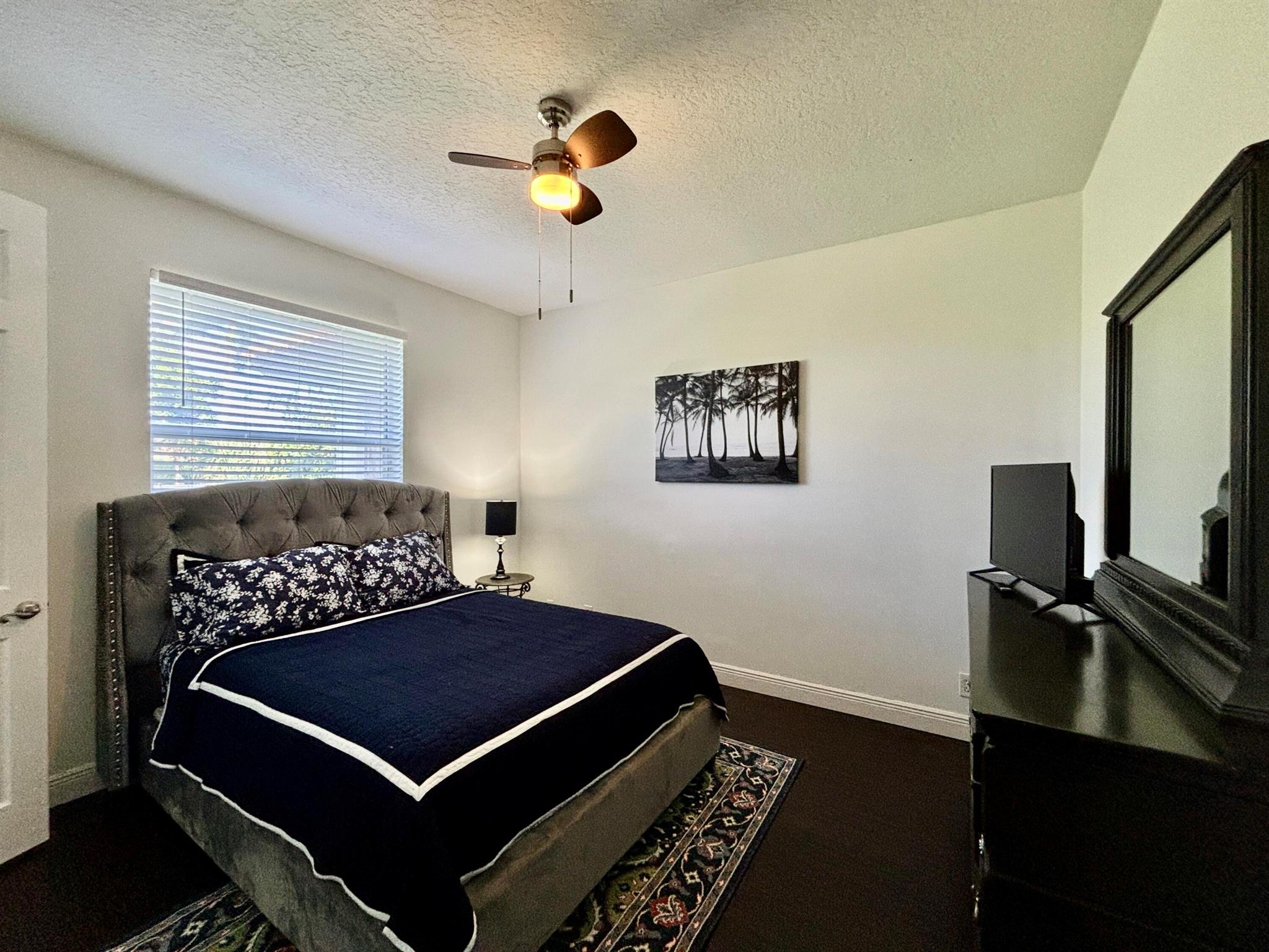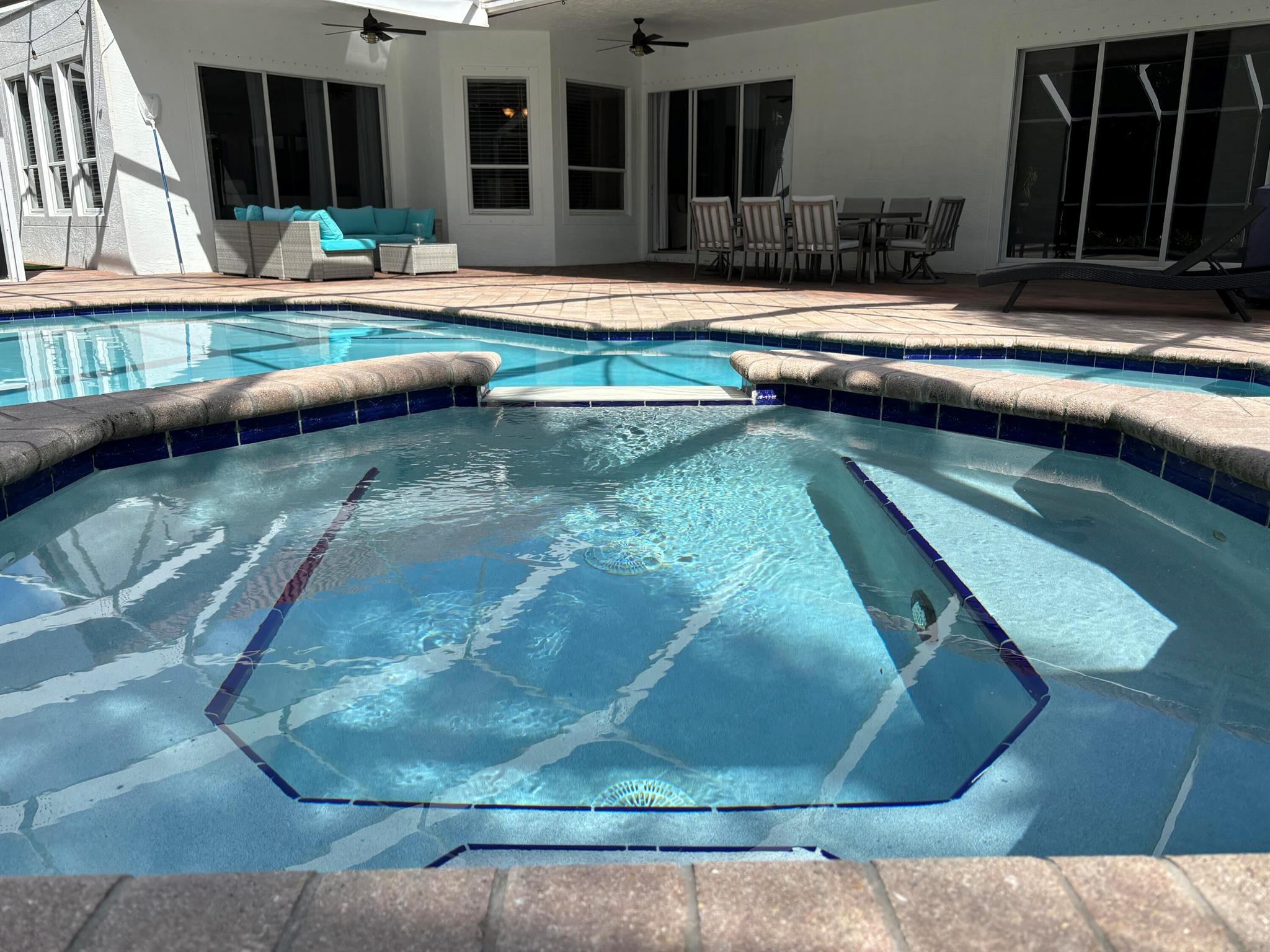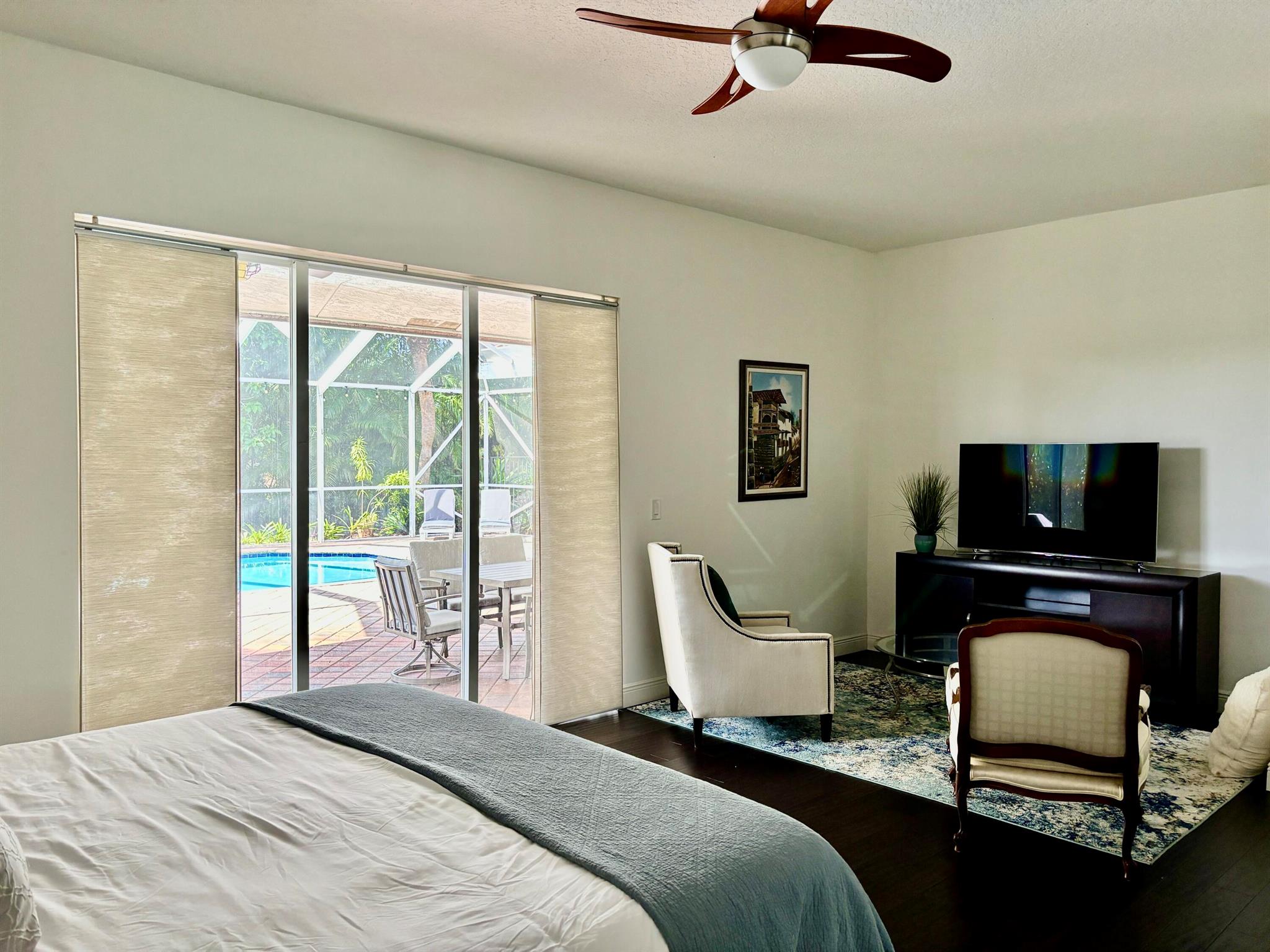 Available 5/1/2026. Fully furnished home with 5 Bedrooms, 3 full baths, 3 car garage and private screened patio with propane heated pool and spa. This 1-story 3-way-split house is located in the desirable community of Lakefield West on the Wanderers golf course. Centrally located close to WEF, International Polo Club, Global Dressage, Wellington amphitheater, shopping, restaurants, Publix. Screened pool and patio. Remodeled kitchen and all bathrooms, dark wood bamboo flooring.