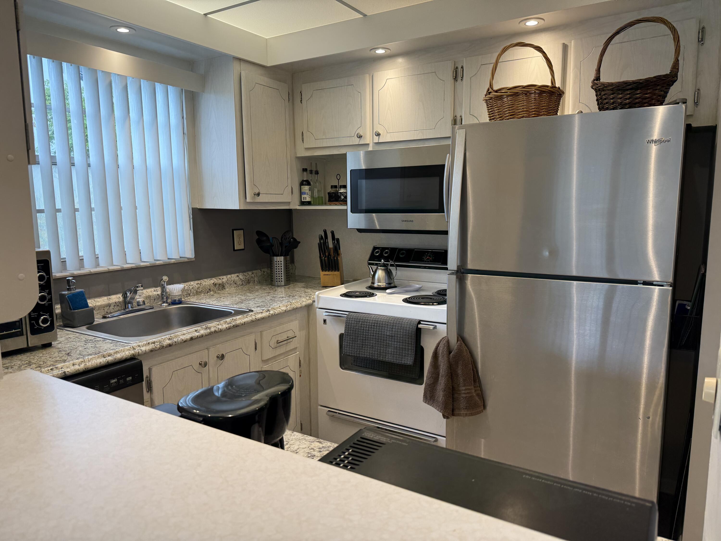 ENJOY YOUR WINTER IN THIS BEAUTIFUL CORNER UNIT, 1 BEDROOM 1 1/2 BATHROOM, FIRST FLOOR, GREAT LOCATION, JUST MINUTES AWAY FROM THE BEACH. EXCELLENT AMENITIES: INDOOR/OUTDOOR POOL, STATE OF THE ART FITNESS CENTER, SHOWS AND MORE. CENTURY VILLAGE IS AN ACTIVE 55+ COMMUNITY.