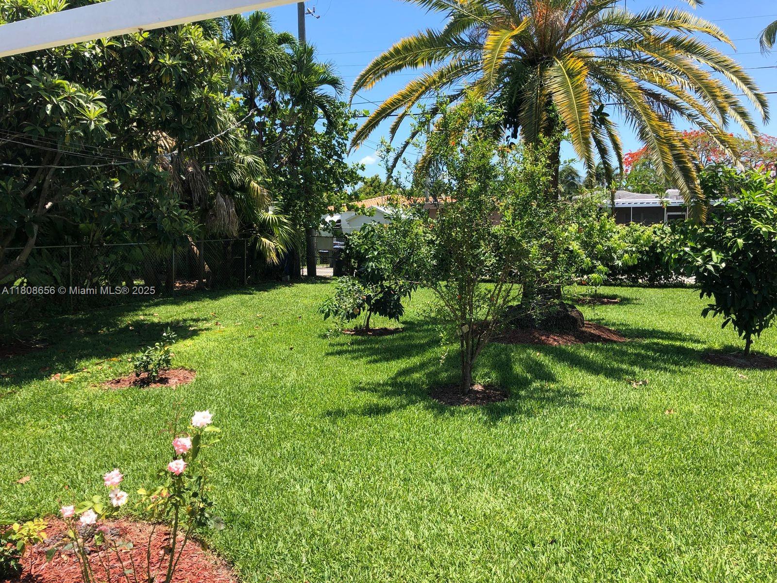 Single-story corner house with 2 bedrooms and 1 bathroom. Parking space available in the driveway and a one-car garage. Updated kitchen with modern stainless steel appliances. Renovated bathroom. Laundry area included. Hurricane-resistant doors and windows. New roof and A/C for added comfort and efficiency. Backyard with mature vegetation and natural fencing. Conveniently located near services, shopping, recreation, and major roads.
