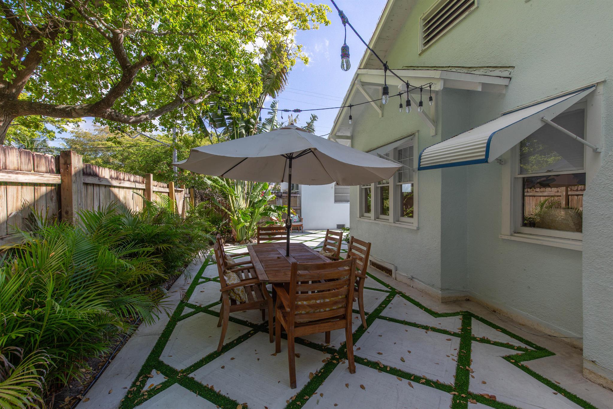 This absolutely charming, totally renovated single family home is ideally situated in North Palm, just walking distance from the water! The chic interior features 2 bedrooms, 1 full and 1 half bathrooms, a Florida room, and a open patio perfect for outdoor dining. This property is offered fully furnished! The home has the beautiful original wood floors throughout the living spaces and gorgeous modern tile in the kitchen and Florida room. The kitchen offers butcher block counters, white shaker cabinets with a stunning blue tile backsplash, and updated stainless appliances with a gas range. The outdoor patio features designer oversized grass inlaid pavers and beautiful tropical landscaping. Utilities are included up to $350/month, no pets allowed.