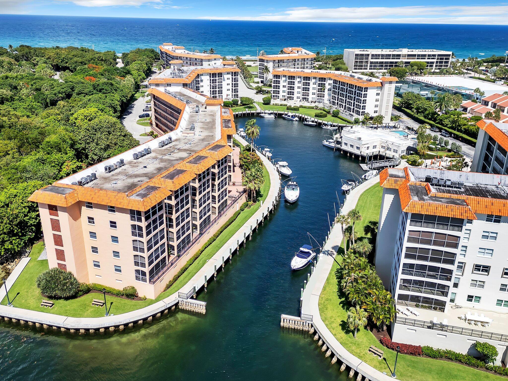 Welcome to your perfect winter retreat! This beautifully furnished and renovated, 2 Bed, 2 Bath island-inspired condo offers unparalleled views of the Intracoastal and ocean--all from the comfort of your screened Lanai. Watch the boats glide along the intracoastal and soak in the serenity of San Remo's exclusive waterfront lifestyle. Located in a sought-after boating community with private beach access, San Remo is just minutes from the Boca Inlet, Downtown Boca Raton and Delray Beach where you can indulge at trendy restaurants and explore a multitude of shopping options. This impeccably maintained residence is professionally designed with a tropical Tommy Bahama flair and it's light, bright and features Impact Glass, custom window treatment, eat-in kitchen, GE profile appliances with