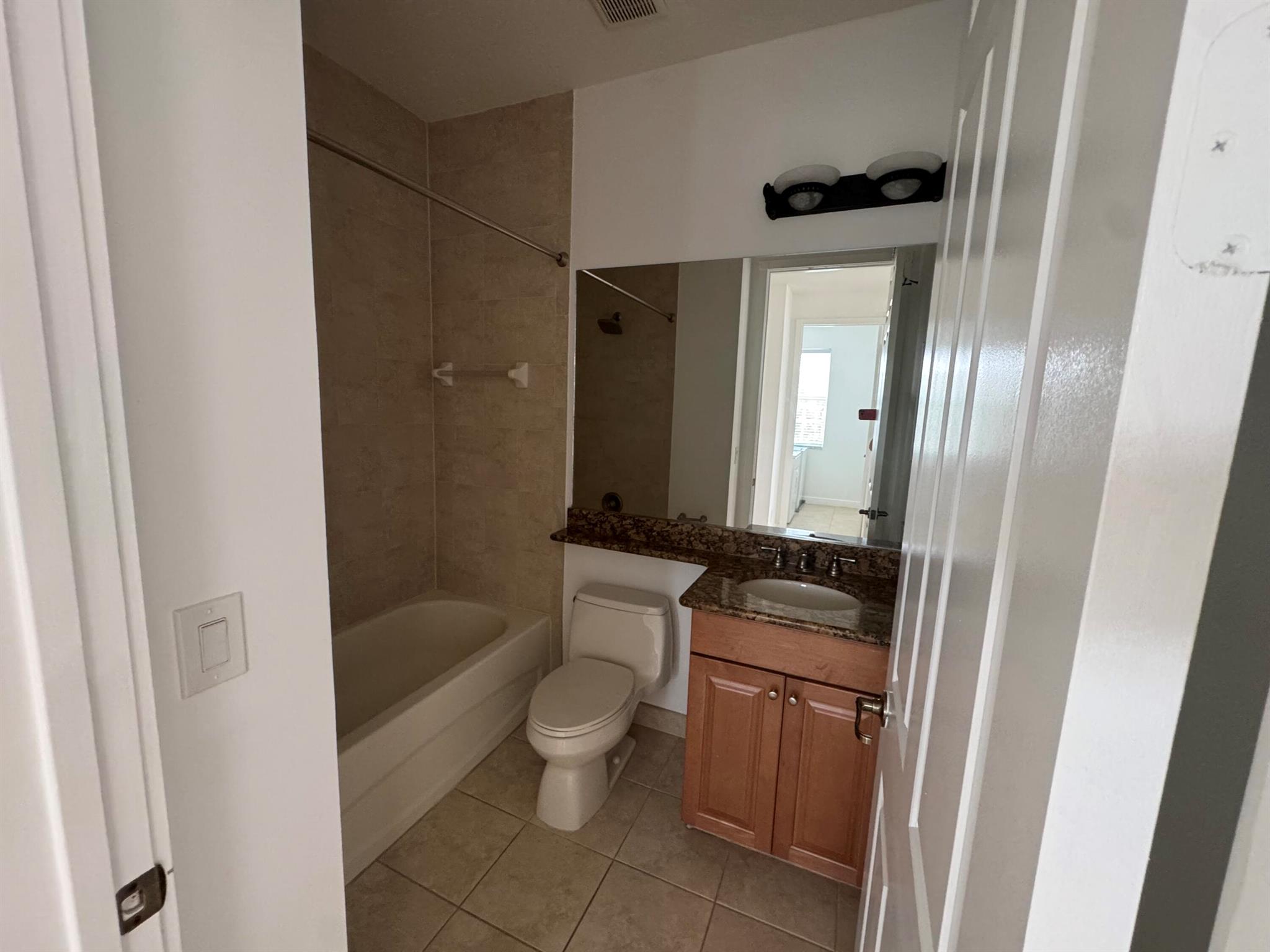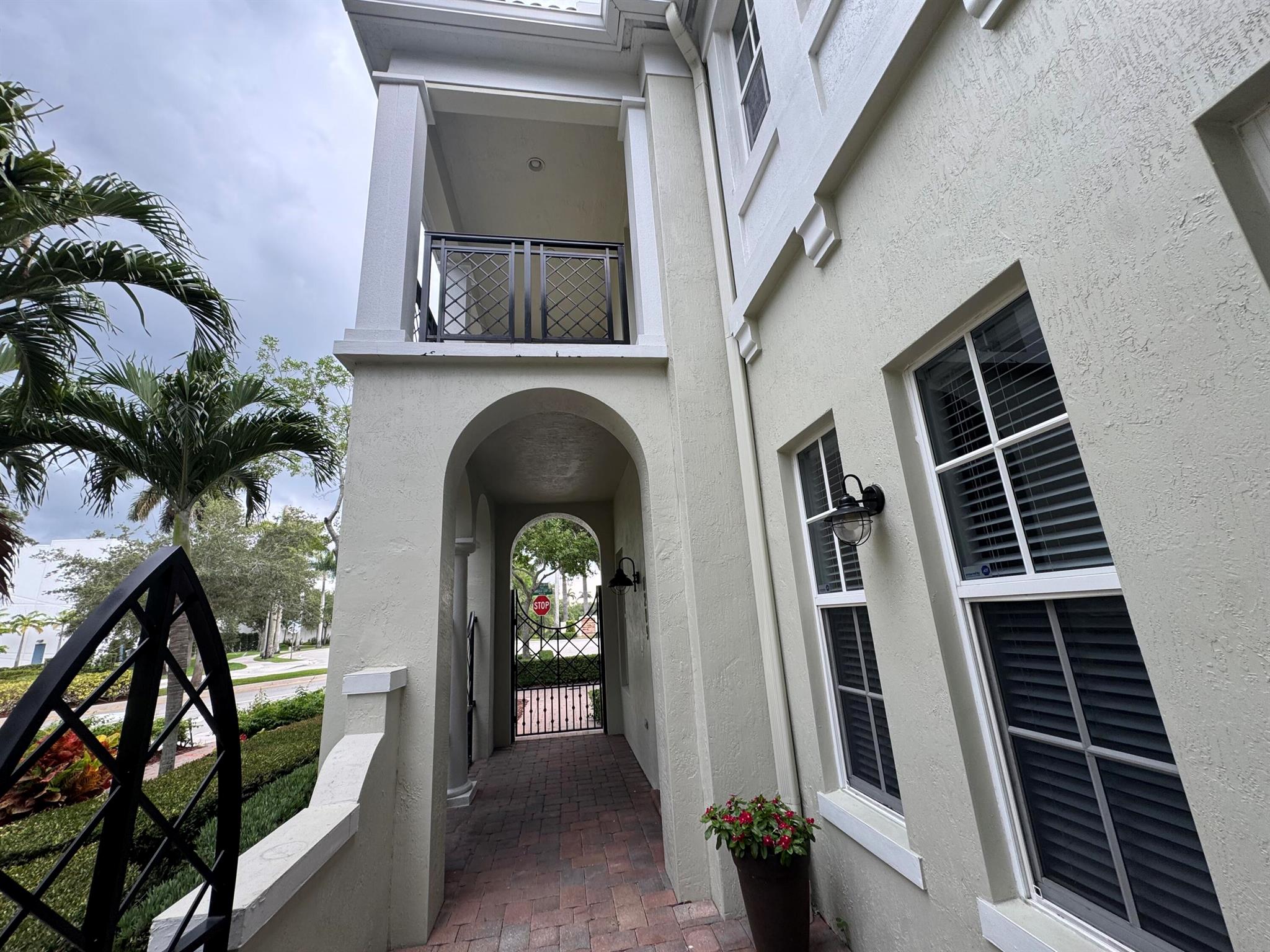 This meticulously, spacious, end unit 3-bedroom, 2.5-bath townhome offers the perfect blend of comfort and convenience in a beautiful, well-maintained community. Enjoy generous living spaces inside and out! The kitchen boasts warm cabinetry, granite counters, stainless steel appliances, an island with breakfast bar and tile flooring throughout. Two living spaces living/family room and dining room and a half bath on the first floor. Open, but private gated patio right out of your front door. The primary bedroom is a spacious retreat with 2 large walk-in closets, an ensuite bathroom, dual sink vanity, soaking tub, and separate shower. Open the door to a spacious balcony and enjoy the tropical palms around this unit. Two additional bedrooms and bath, a second floor laundry room with