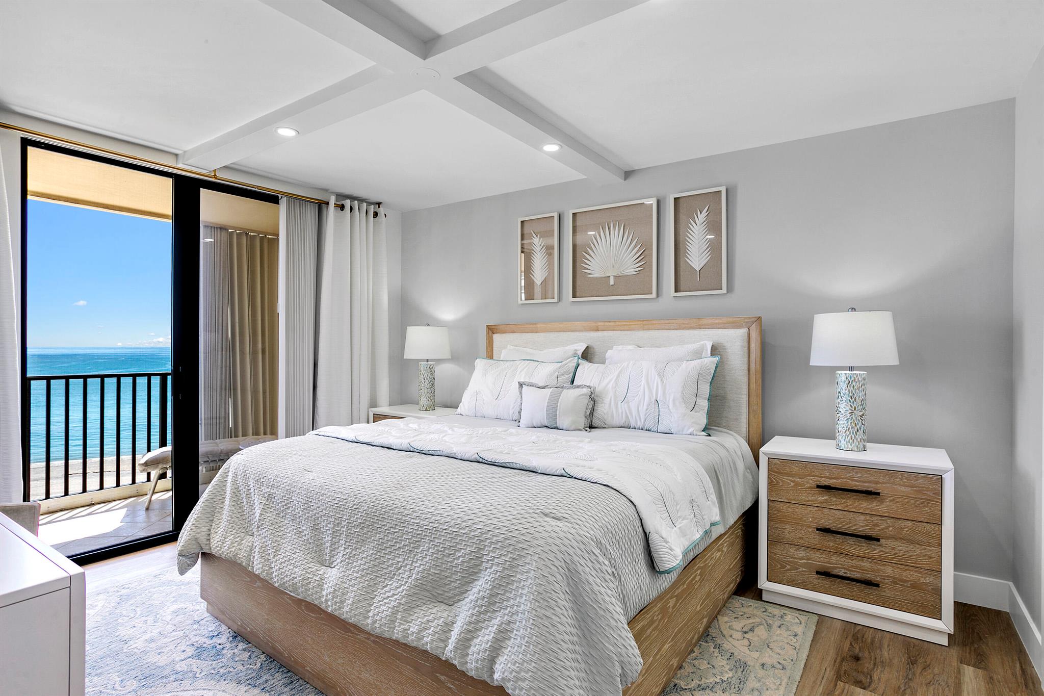 Directly on the beach in Jupiter with a stunning 9th floor, due east ocean view. This 2 bedroom / 2 bath condo is completely renovated top to bottom with all new furnishings (2024). If you have high expectations, you will appreciate the $300k+ interior renovation + the brand new decor selected and styled by a local designer. Offered seasonally @ $11,500 / month with a 4 month minimum lease, or $7000 / month annually turnkey. Extensive building renovations are complete! Ocean Trail is directly on the beach and offers heated pools, spa, sauna, fitness room, social activities, tennis, gated entry, and secure under building parking.