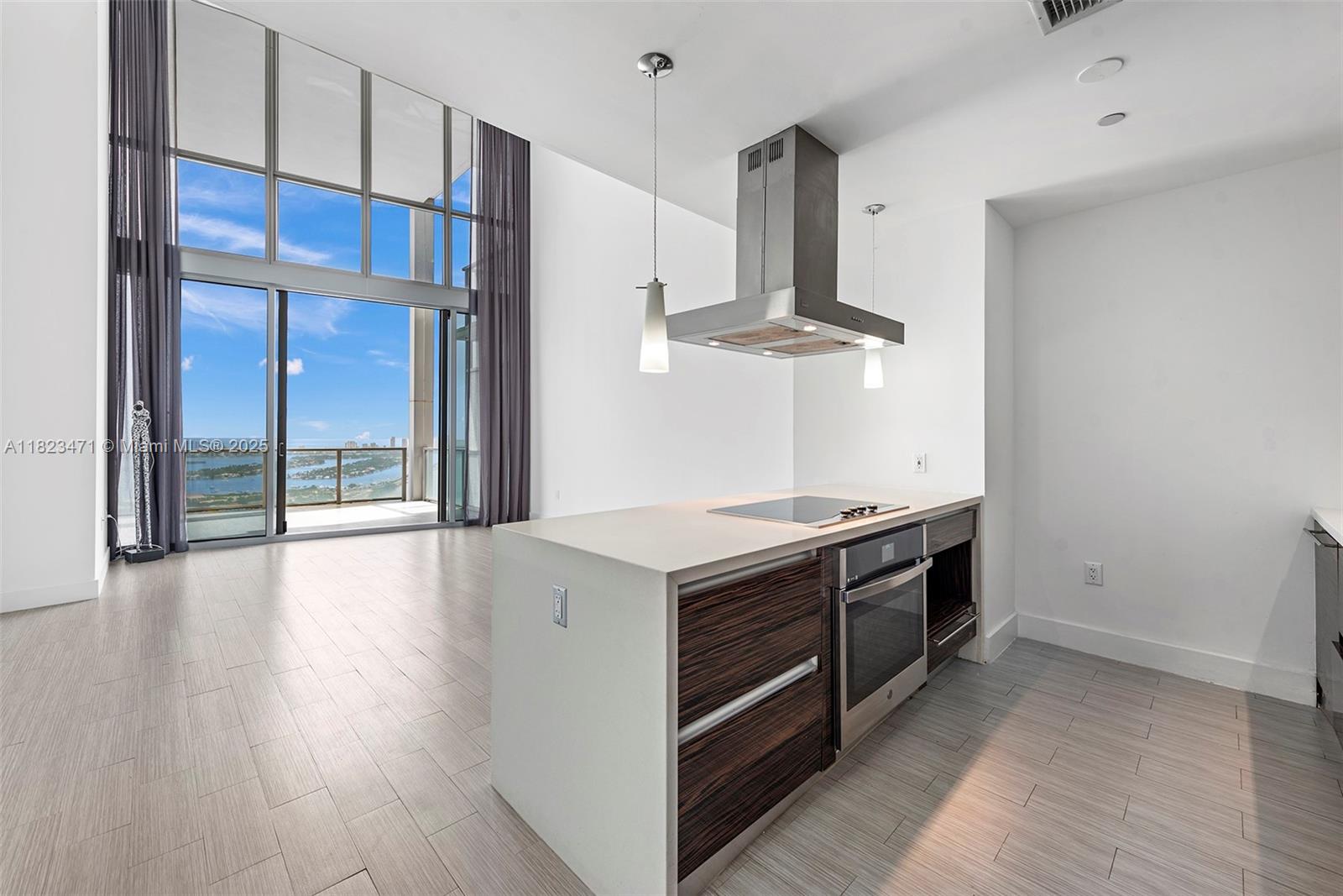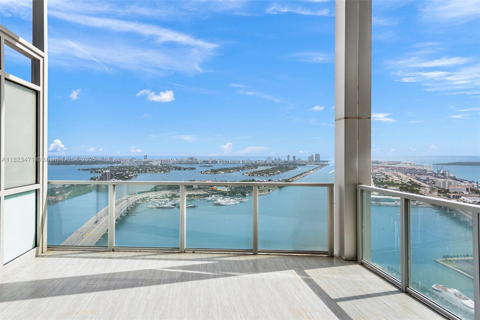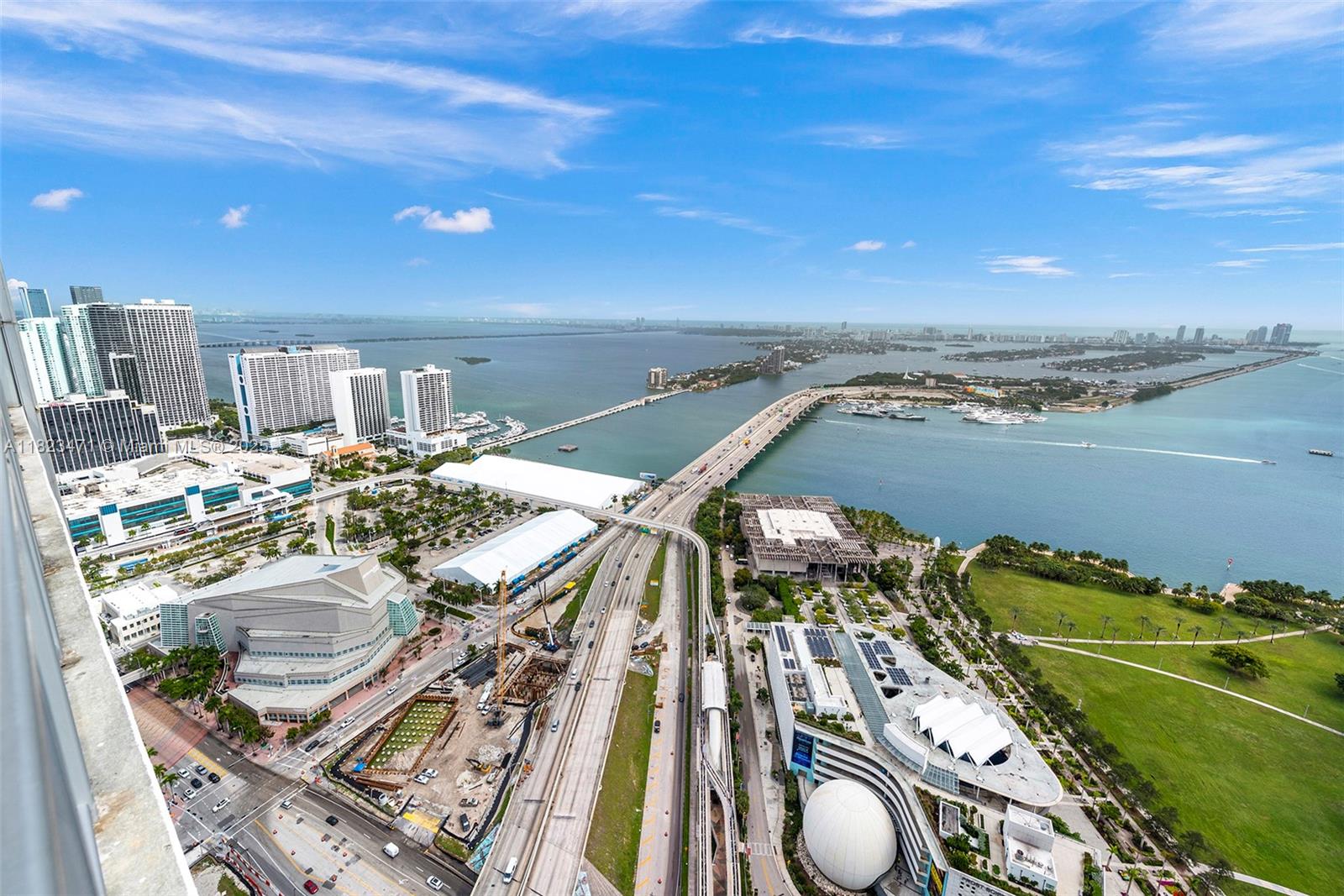 Modern 2-story 20' ceiling Loft-style 1 Bedroom + large Den with built-out closet, 2 full Bath partially remodled residence. Enjoy panoramic unobstructed views from Biscayne Bay beyond the island of Miami Beach and the open Atlantic Ocean, with incredible sunrises. The Primary Suite features a frameless glass enclosed shower showcasing all the views, dual vanity and spaciouse built in walk-in closet. Floor to ceiling, wall to wall framed glass overlooking downstairs Living room and all the panoramas.Viking appliances. Amenities include concierge, beach club at Bently Beach South of Fifth, 24/7 security, valet, west pool and east sunrise lap pool, fitness center with new equipment, spa, pooolside Champaign bar, adult & kids game rooms and more! Walking distance to Kaseya Center Arena.