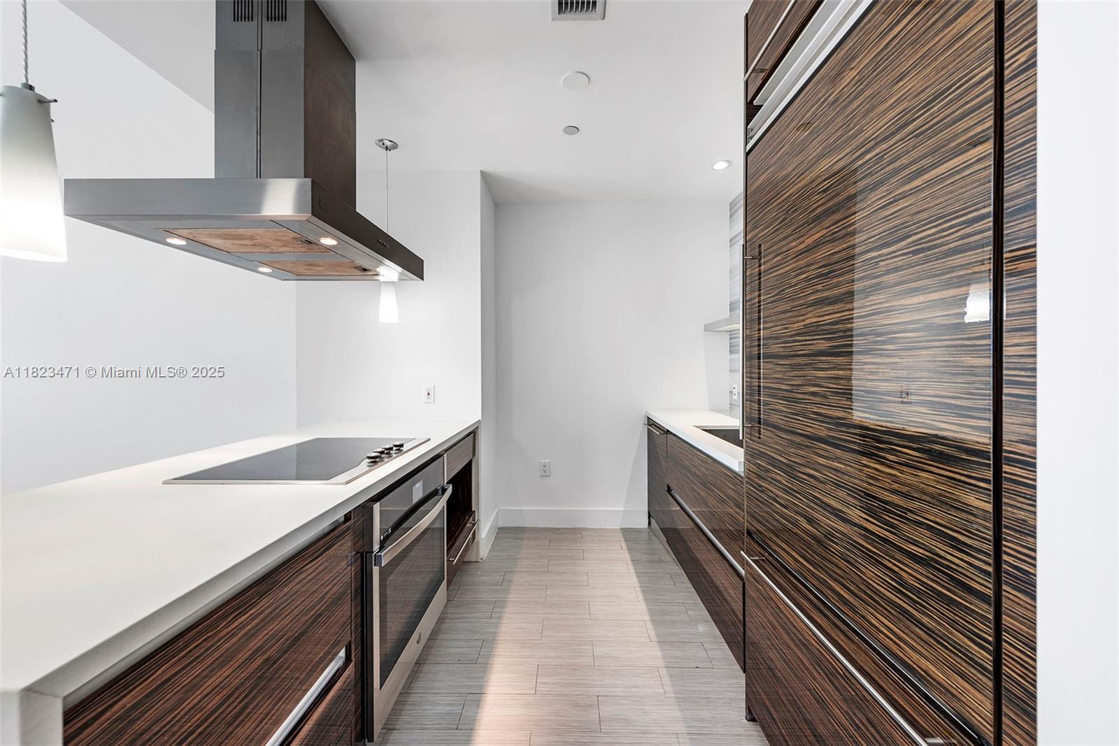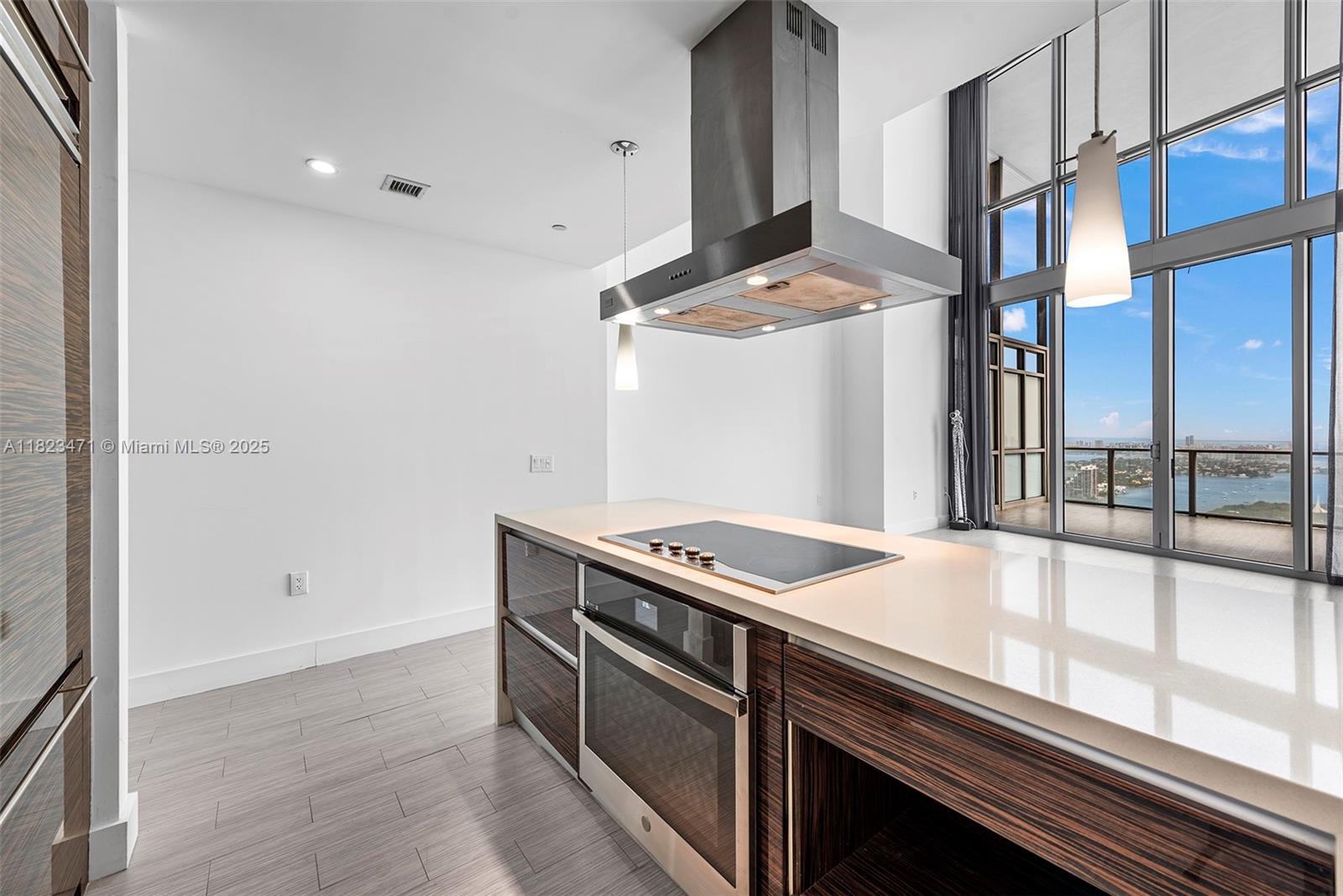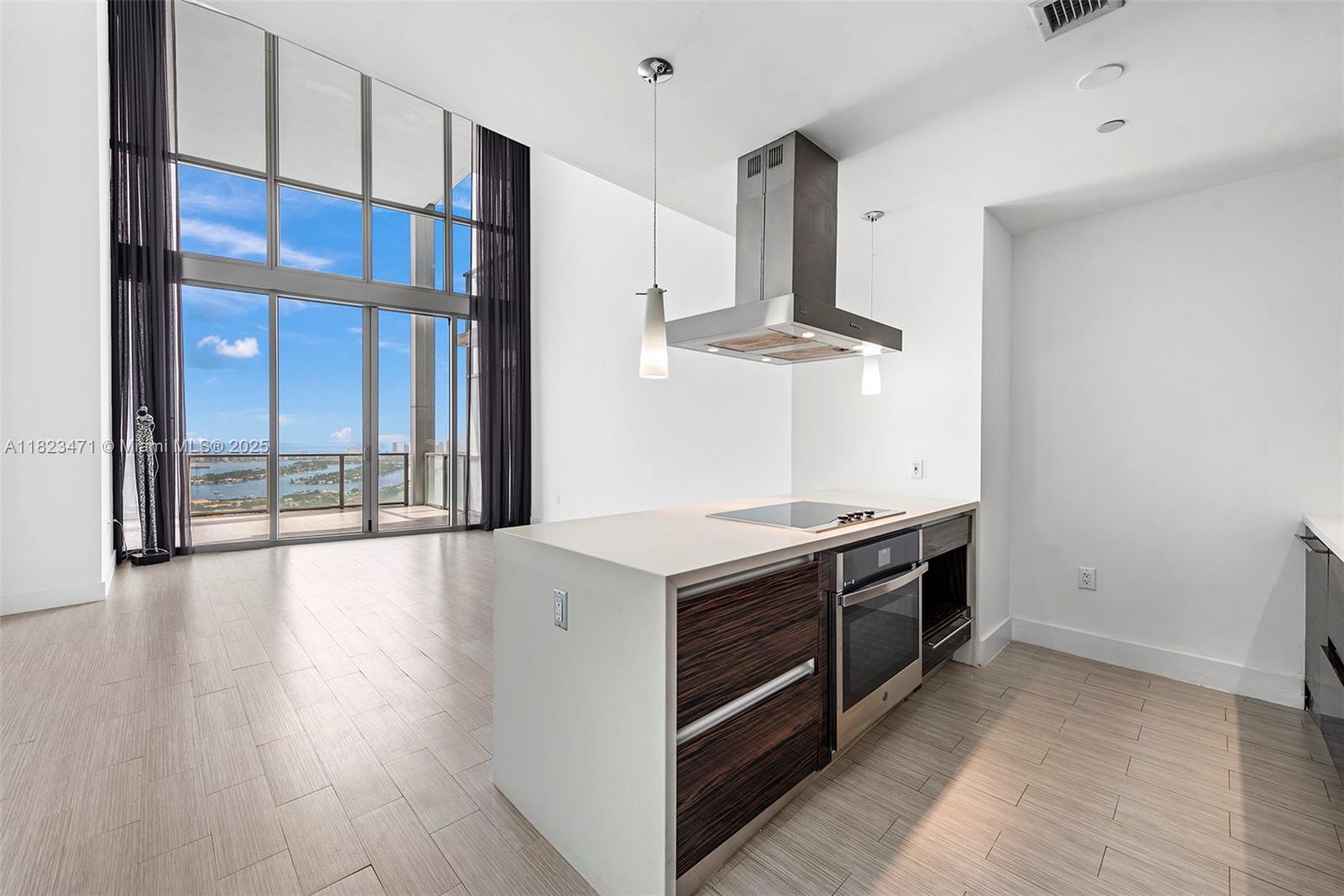 Modern 2-story 20' ceiling Loft-style 1 Bedroom + large Den with built-out closet, 2 full Bath partially remodled residence. Enjoy panoramic unobstructed views from Biscayne Bay beyond the island of Miami Beach and the open Atlantic Ocean, with incredible sunrises. The Primary Suite features a frameless glass enclosed shower showcasing all the views, dual vanity and spaciouse built in walk-in closet. Floor to ceiling, wall to wall framed glass overlooking downstairs Living room and all the panoramas.Viking appliances. Amenities include concierge, beach club at Bently Beach South of Fifth, 24/7 security, valet, west pool and east sunrise lap pool, fitness center with new equipment, spa, pooolside Champaign bar, adult & kids game rooms and more! Walking distance to Kaseya Center Arena.