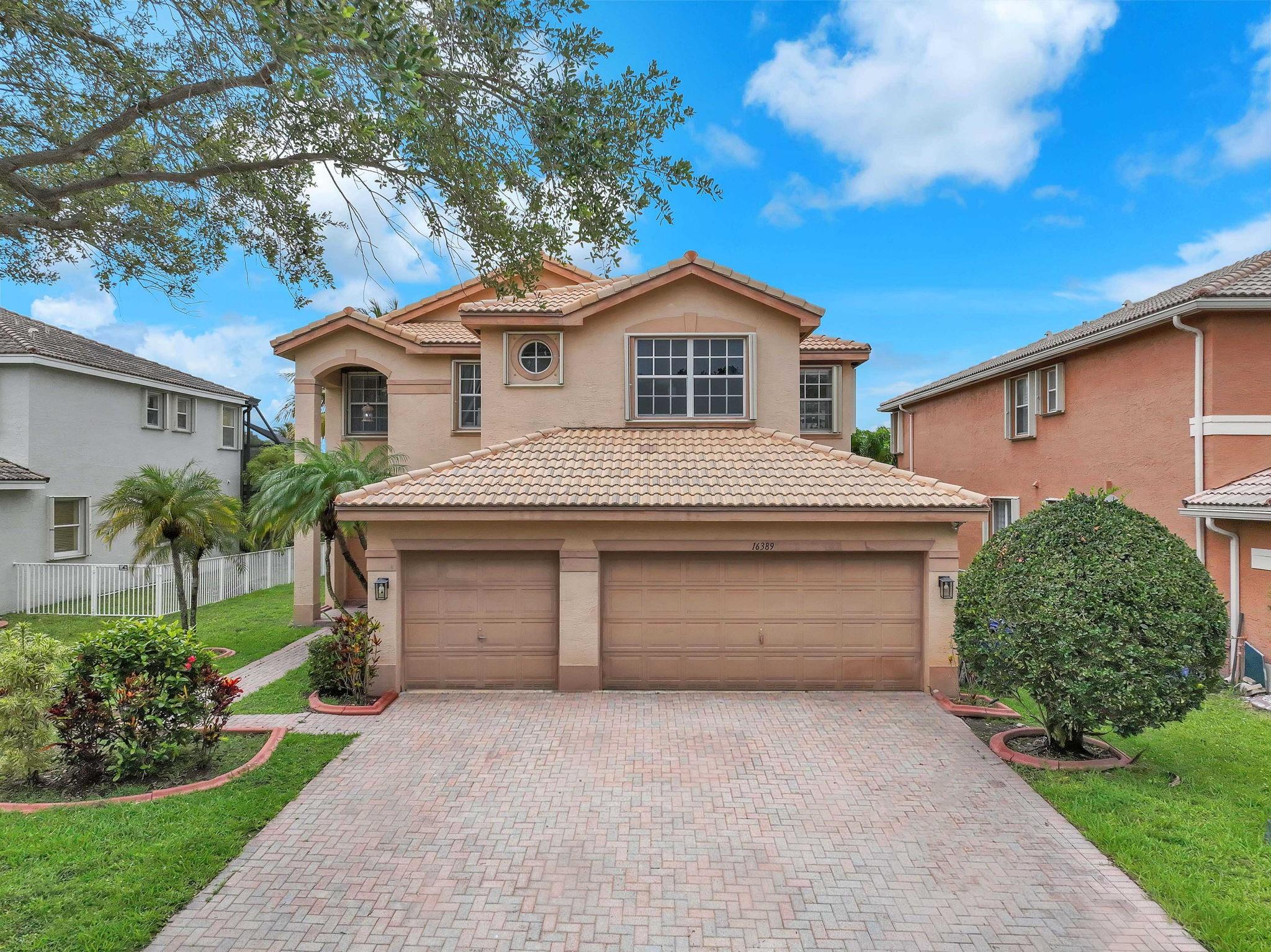 Amazing 6BR/4BA two-story home with 3-car garage, private pool, and breathtaking lake view! This spacious home offers a bedroom and a bathroom on the 1st floor. The open-concept layout includes formal living and dining rooms, a large family room, and a gourmet kitchen with granite countertops, stainless steel appliances, and a breakfast nook. Upstairs features generously sized bedrooms, including a luxurious primary suite with walk-in closets. Step outside to a screened-in patio overlooking a sparkling pool and peaceful lake. Home includes accordion hurricane shutters, and a laundry room. Located in a resort-style community offering a clubhouse, fitness center, pool, playground, and more. Conveniently situated near top-rated schools, hospitals, shopping, centers, dining and major highways.