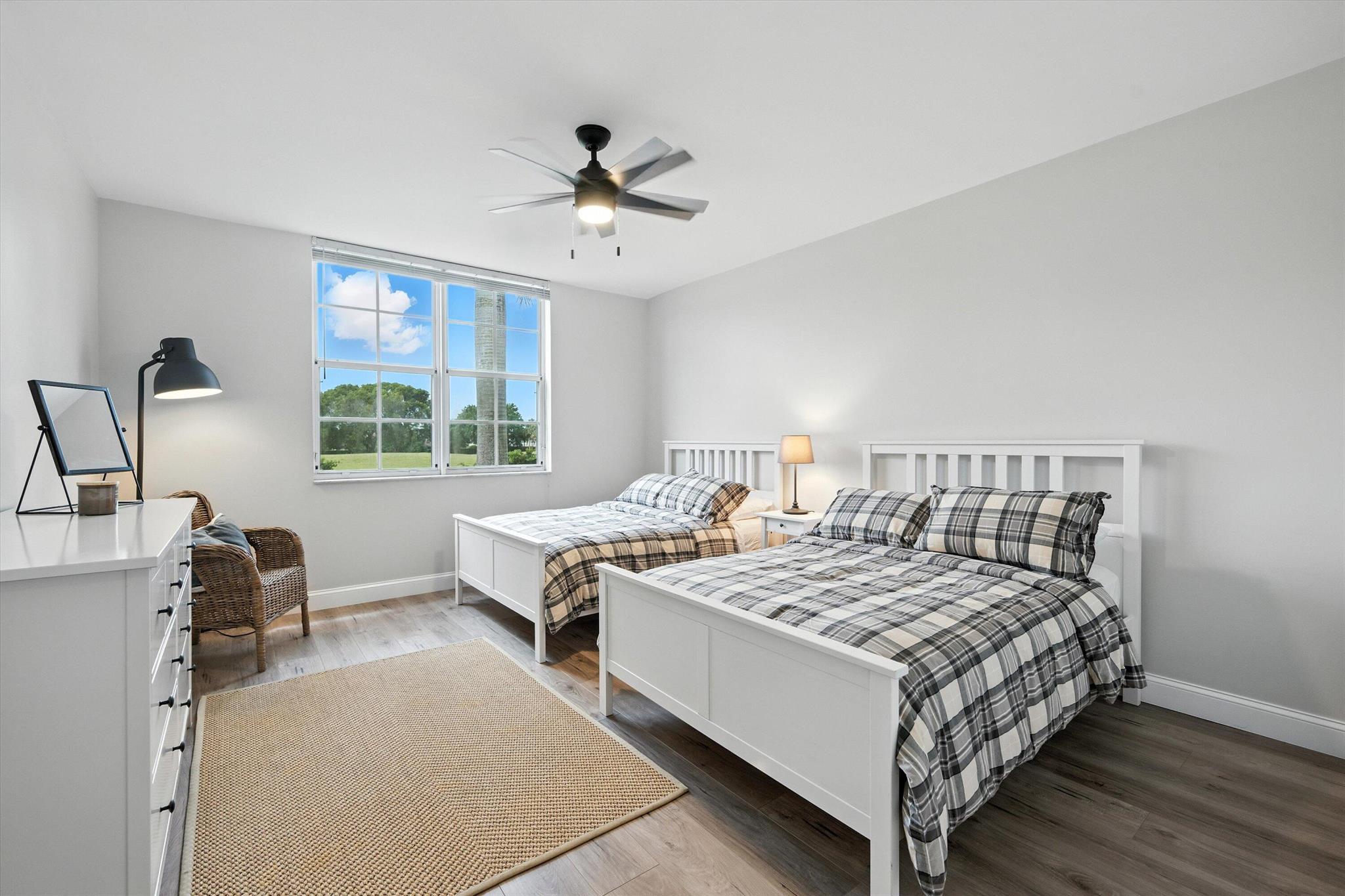 Clean and bright unit at St. Andrews Place. Tastefully furnished, turnkey condo with two master bedrooms with en suite bathrooms and walk in closets. Split floor plan. Conveniently located on a second floor and close to the beautiful resort style community pool, tennis, gym and club house. Enjoy a great view of the golf course from all windows or screened balcony. Great location for seasonal or off season visitors to enjoy Wellington and all equestrian events. All new appliances. $5,500/month seasonal lease, available off season at $3,000/month.