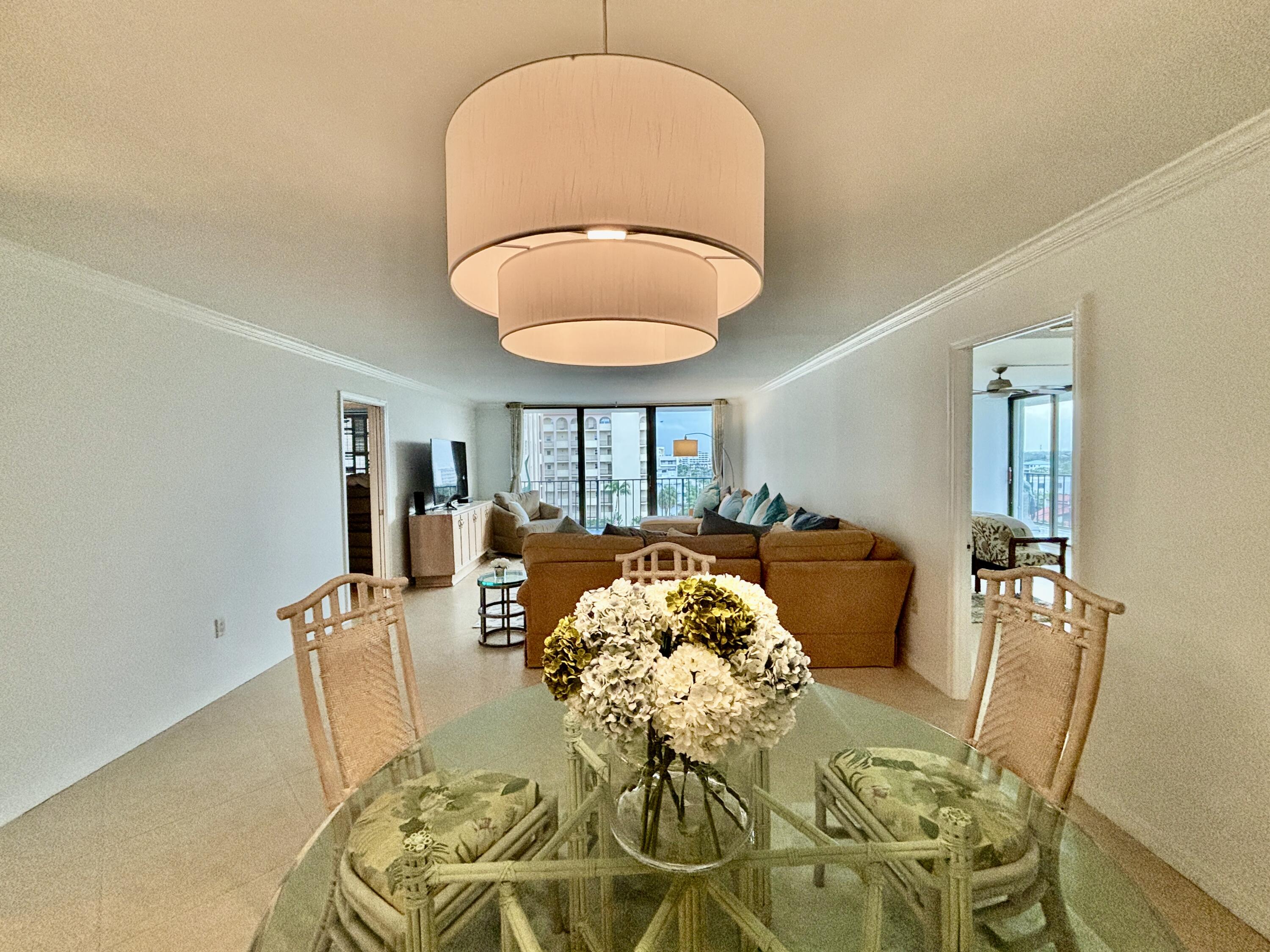 This fully furnished turn-key bright and light condo in Highly Desirable Claridges building impresses with a wraparound balcony with views of both the intracoastal and the ocean. The condo has everything you need to live and enjoy in the Palm Beach! Huge 1450 sq ft under air 2 BR/2 BA apartment will not disappoint: Tile throughout, large bathrooms with Shower and Bathtub, walk-in closets. Fully equipped kitchen with SS appliances. Hurricane Impact Windows and Accordion Shutters for Full Storm Protection. Assigned parking. Stay active using Great Amenities such as Deeded Private Beach, Guard Secured Lobby, Heated Community Pool Overlooking the ocean, Billiard Room, Exercise Room, BBQ Area, Business Center, Party/Club Room with kitchen. Condo Association fee has cable and water included.