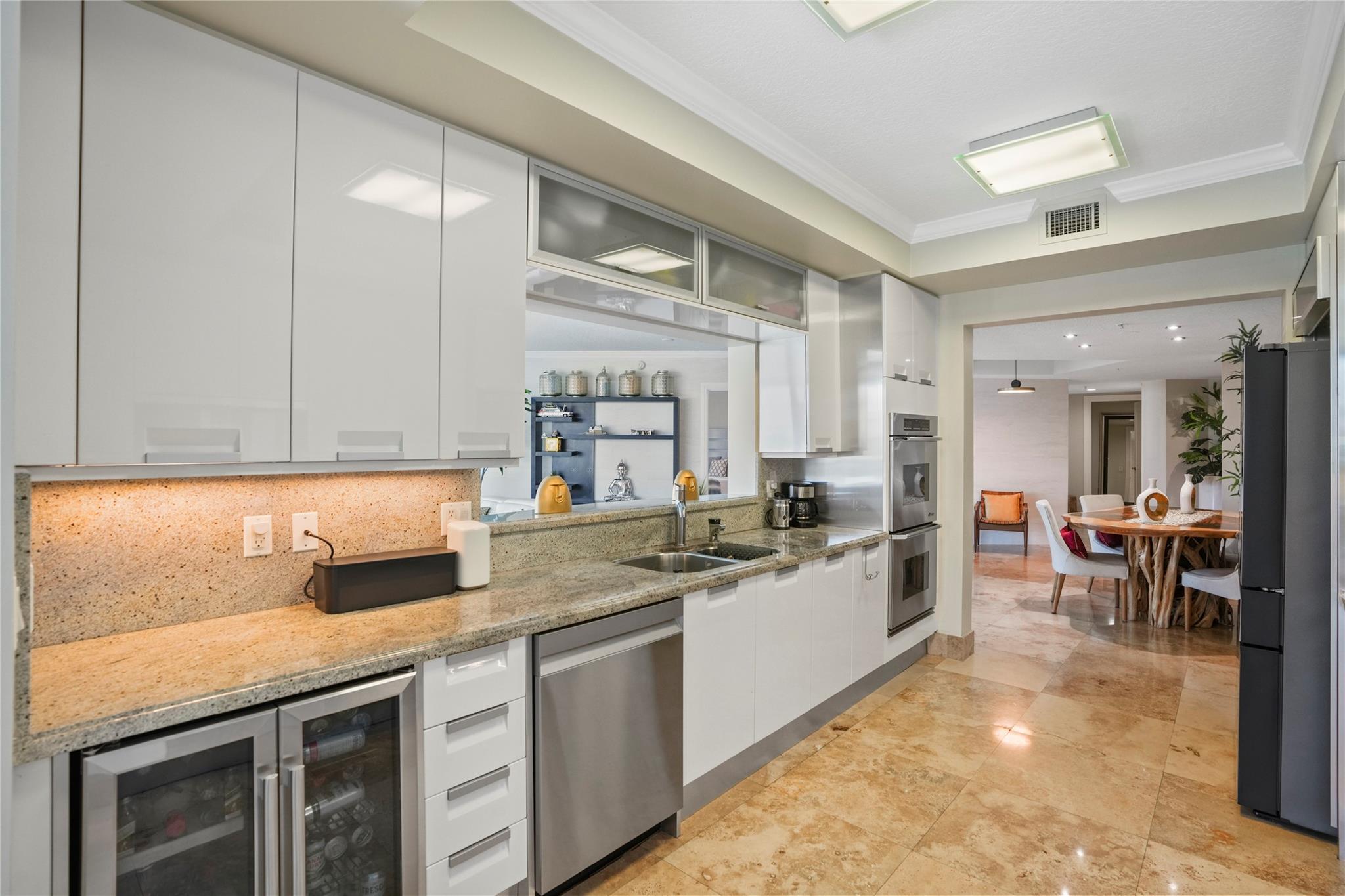 2 PARKING SPACES. PET FRIENDLY. Contemporary-chic corner unit at La Rive, fully furnished and unfurnished for your convenience. Floor-to-ceiling windows and partial Intracoastal views. The spacious wraparound terrace offers west and east exposure, perfect for enjoying morning coffee or sunset cocktails. Modern kitchen with high-gloss cabinetry, Dacor appliances, and double ovens. Main suite features private balcony, 2 walk-in closets, and a spa-style bath with large jacuzzi tub. Two guest rooms with en-suite baths provide comfort and privacy. Boutique building offers 24/7 security, semi-private elevator, garage parking, renovated pool deck, gym, steam room, sauna, BBQ area, and more. Just a short walk to Fort Lauderdale’s quiet beach, restaurants, and Bonnet Gardens.