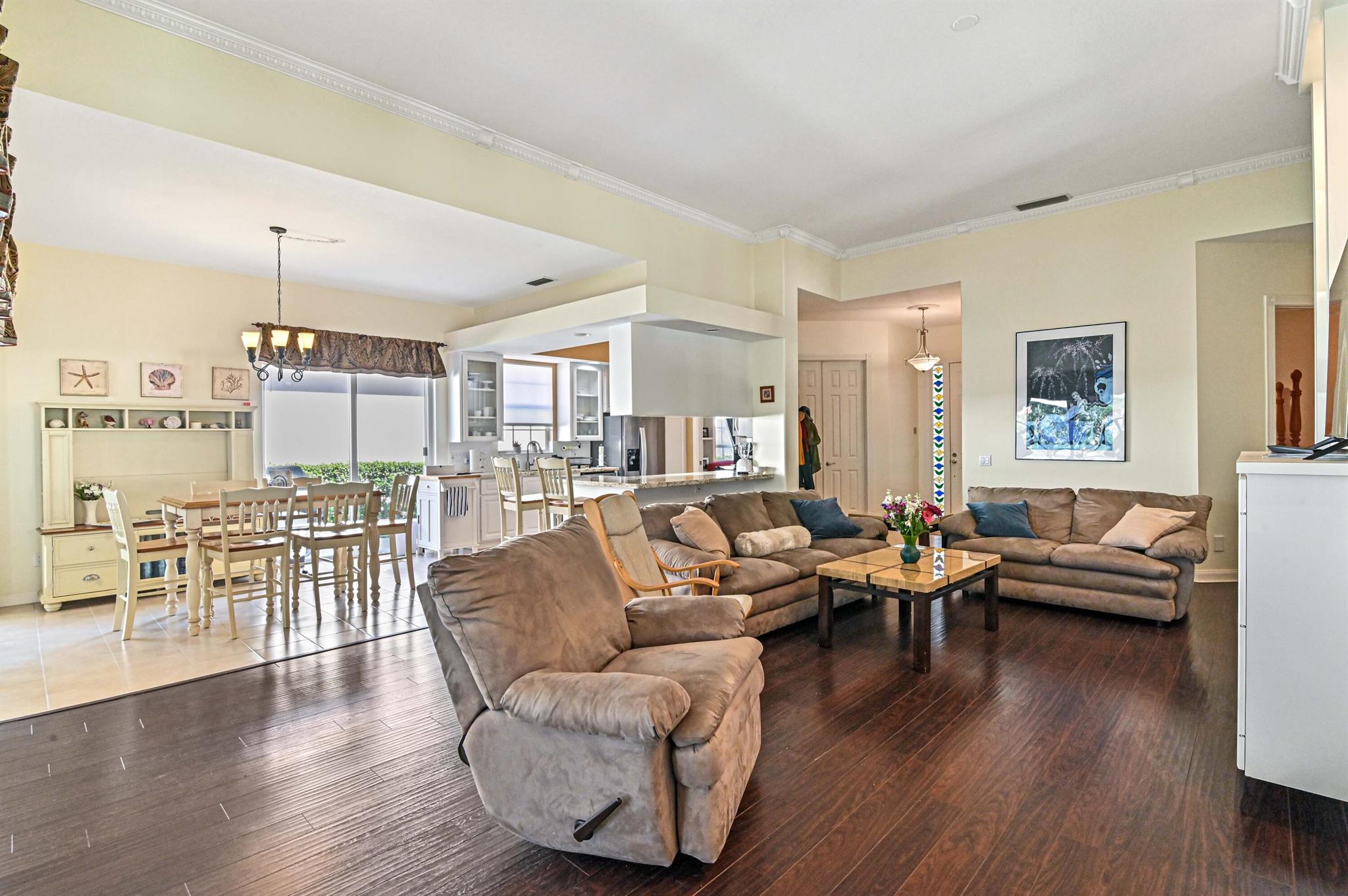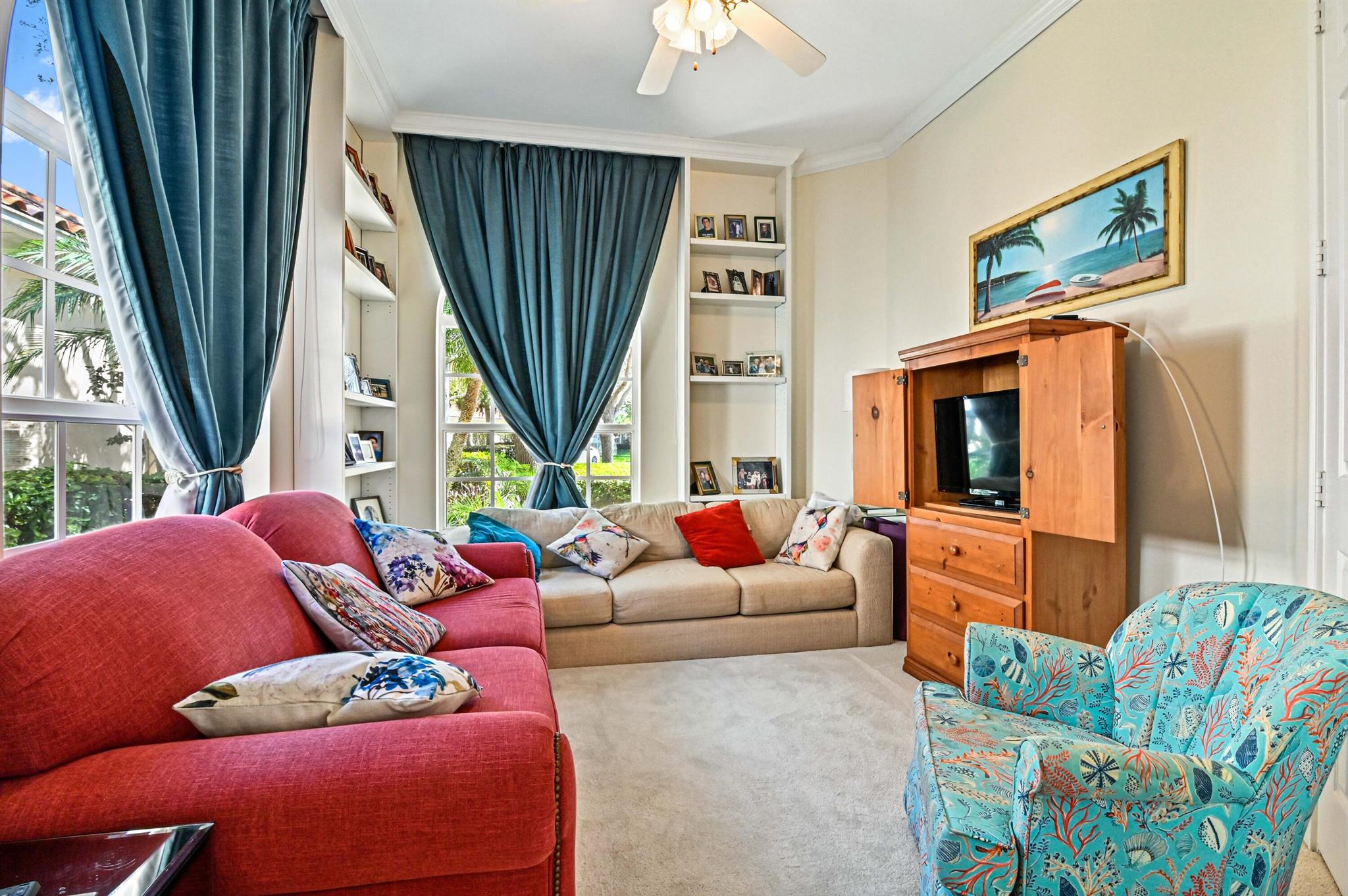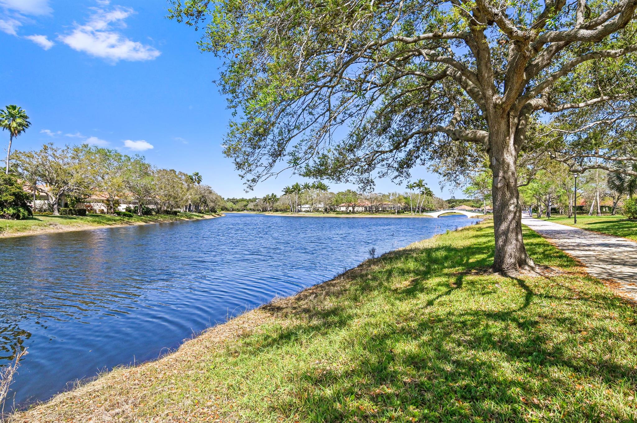 Elegant and spacious home in the exclusive community of Riverwalk. Open concept 2 bedroom 2 bath plus den home with garage for 1 car and complete gym! BBQ Grill, screened-in patio overlooking the lake with a swim spa. Massive master suite with dual sinks and spa tub. High ceilings with crown molding and laundry room inside. Located just minutes from the Turnpike, I-95, Wellington, Boynton Beach, Downtown West Palm Beach, gorgeous area beaches, and 3 international airports.