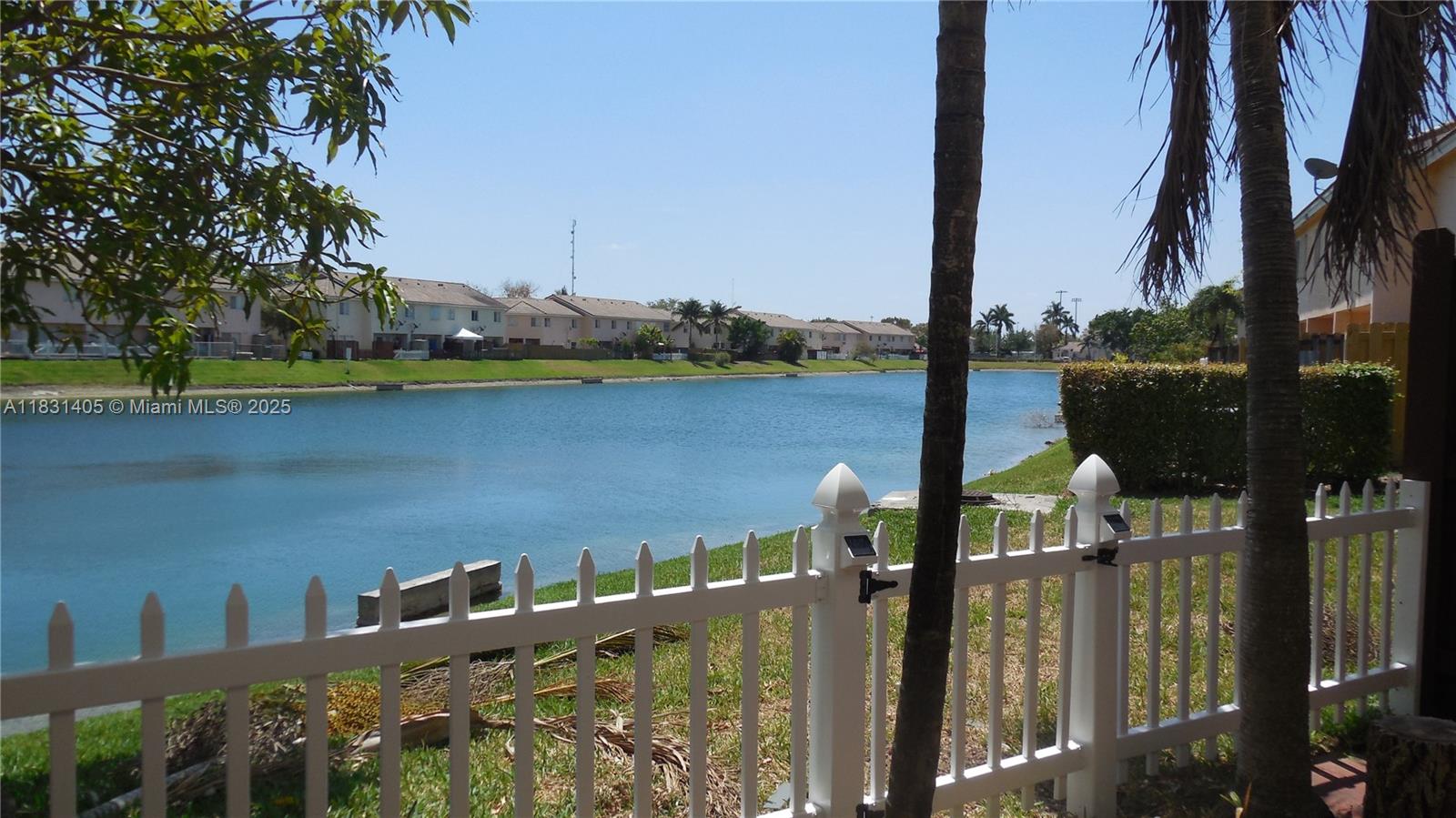 Beautiful townhouse with a stunning lake view. Featuring 3 bedrooms and 2.5 bathrooms. Ceramic tile on the first floor and wood laminate upstairs. Equipped with hurricane shutters and a full-size washer and dryer. Recently painted and very well maintained. Located in the gated community of Bonita Villas, which offers a pool, children's playground, and 24-hour security.Conveniently close to shopping centers, the Metro Zoo, and just 5 minutes from the Turnpike