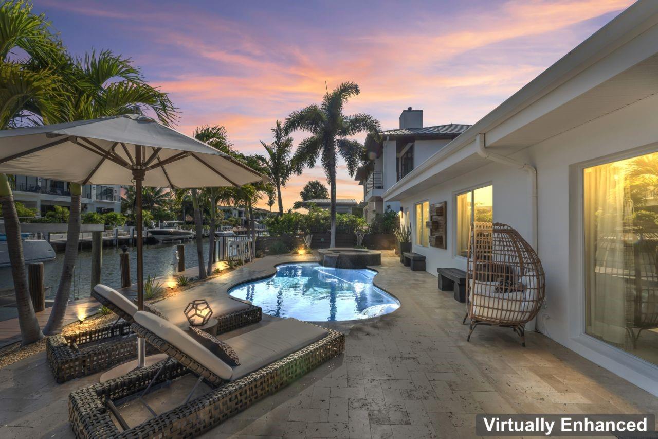 Welcome to your waterfront paradise in sought-after Lighthouse Point! Coral Key Villas is one of South Florida's prime waterfront communities located close to the Hillsboro Inlet, Lighthouse Point Yacht Club, marina, upscale shopping and restaurants. This meticulously remodeled one story 3-bedroom, 3-bath home is a boat lover’s dream with a work-my-boat-dock, new deck, 80 feet of deep-water frontage on an extra-wide ocean-access canal—no fixed bridges for effortless cruising to the Atlantic. Approach the beautifully paved circular driveway elegantly framed by vibrant landscaping and step inside to discover custom lighting, built-in cabinetry, custom closets, impact-rated windows and doors, and designer window treatments throughout.