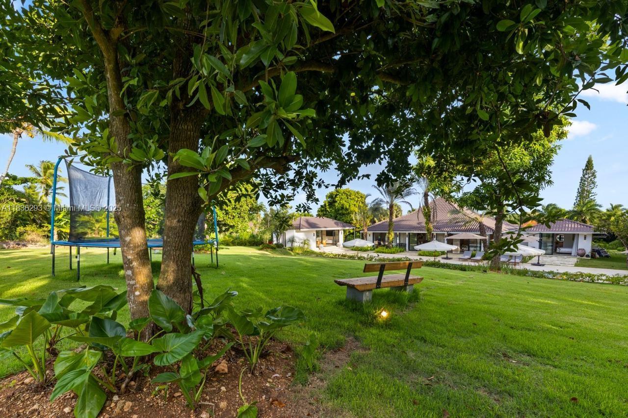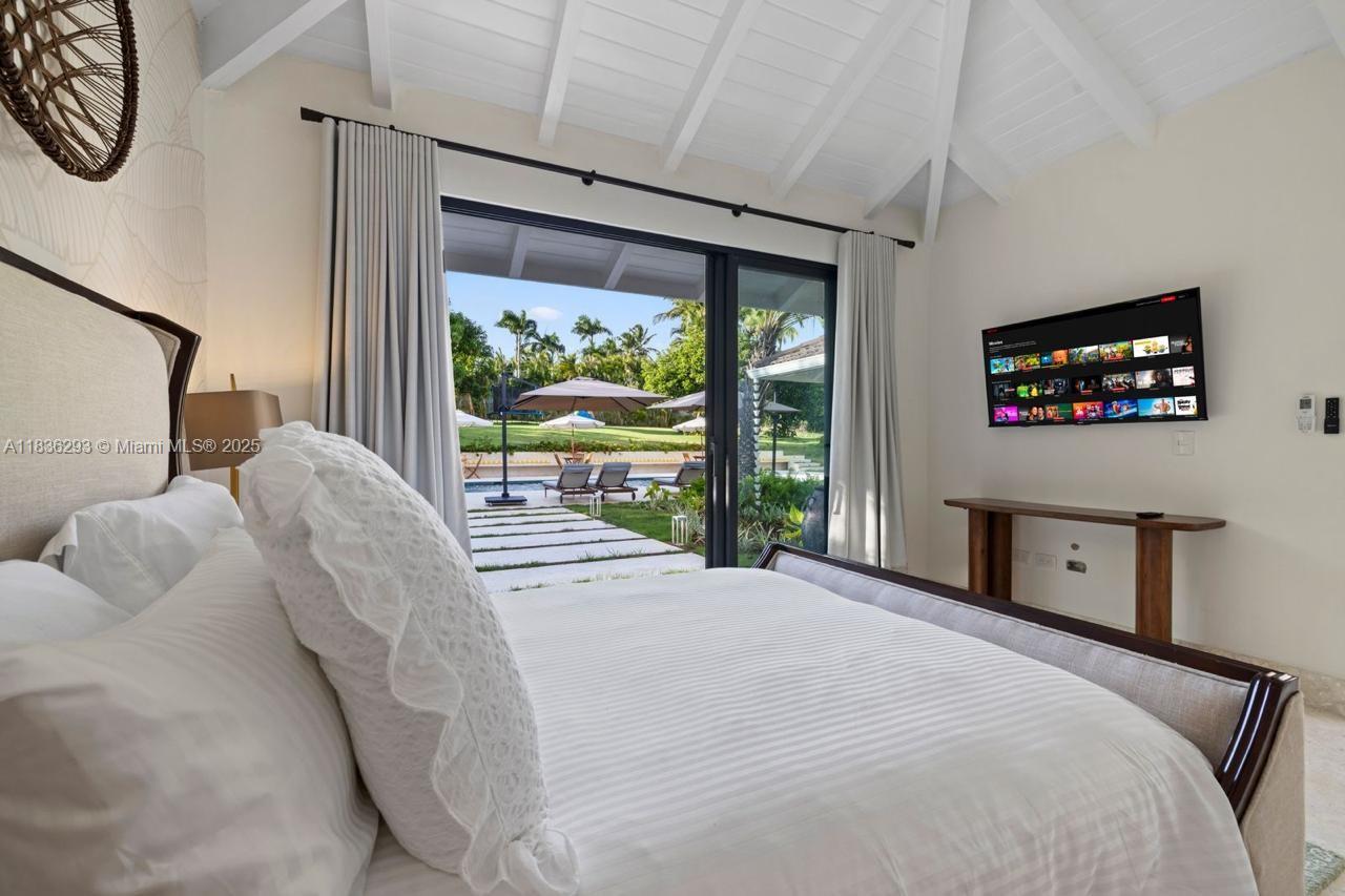 Price subject to seasonal change; please confirm in advance. The villa features 5 spacious bedrooms, each with its own TV and dressing room. Enjoy the elegant 15-meter pool, a cozy TV/music studio, and a Sonos surround sound system in the living and pool areas. The courtyard is filled with organic fruit trees such as mango and avocado, along with a trampoline and slide for the children. Experienced and friendly staff provide daily cleaning and cooking. With its blend of style, comfort, and thoughtful design, we offer the ideal space for you to enjoy time together while still having room to relax independently, all in one of Casa de Campo's most strategic and beautiful locations.