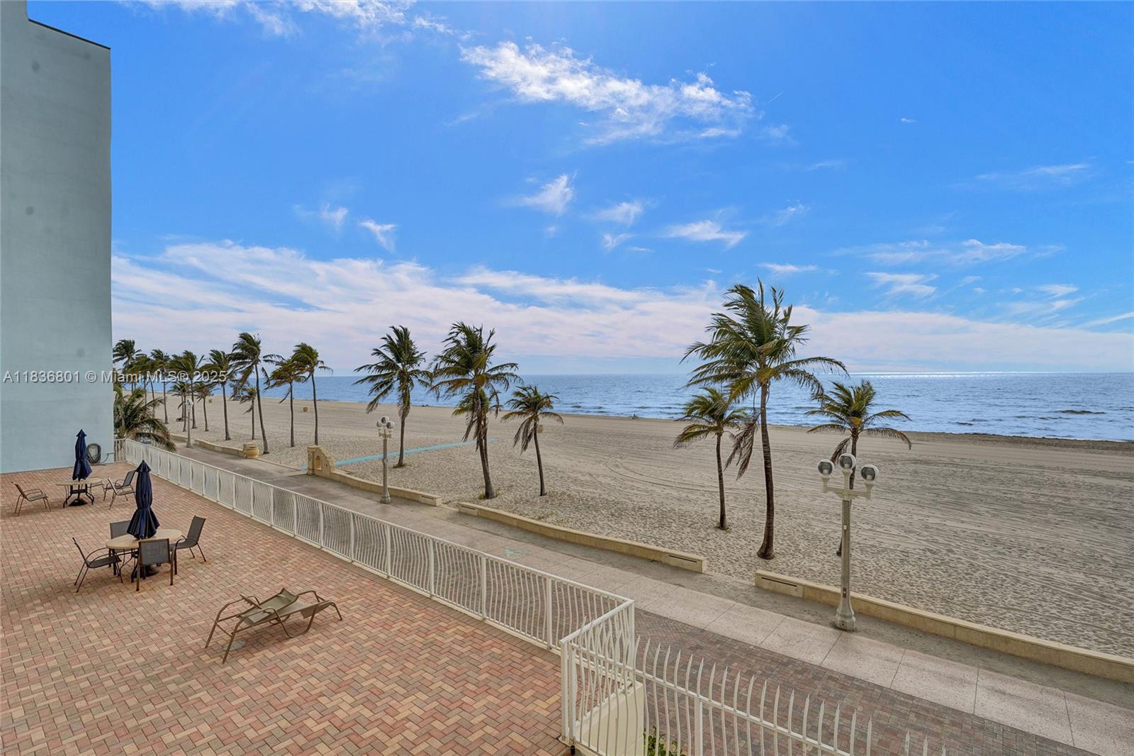 Live where others dream to vacation! This apartment has never been offered before and it is truly one-of-a-kind! Corner unit with direct ocean views on two sides; your own large patio - the only one in the building. Bright and airy, the apartment features tiled gleaming floors, spotless updated bathrooms, in unit W/D, all stainless steel kitchen appliances and tons of storage (including a storage room big enough to be an office). Fantastic location right on Hollywood Broadwalk, in its residential area, yet just a stroll to the vibrant center with numerous restaurants and live music under the stars. Secure garage parking. Roof top terrace. Beachfront living doesn't get any better than this. Come and see for yourself!