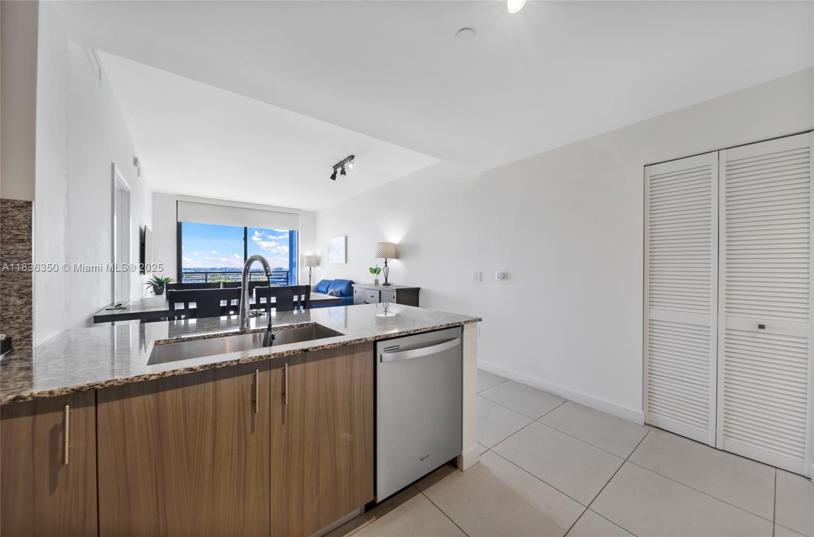 Fully furnished rental in the heart of Downtown Doral! This spectacular 1 bed / 1 bath condo offers modern finishes throughout, including a sleek kitchen with quartz countertops and backsplash, stainless steel appliances, dishwasher, and garbage disposal. Porcelain tile flooring throughout, a spacious walk-in closet, and stunning park and city views add to the appeal. Enjoy peace of mind with impact windows for safety and noise reduction. The building features top-tier amenities: pool, sauna, massage room, fitness center, kids' playroom, valet parking, and more. Located near A+ schools, great restaurants, shops, and supermarkets. Only 15 minutes from Miami International Airport. Available fully furnished – just bring your suitcase!