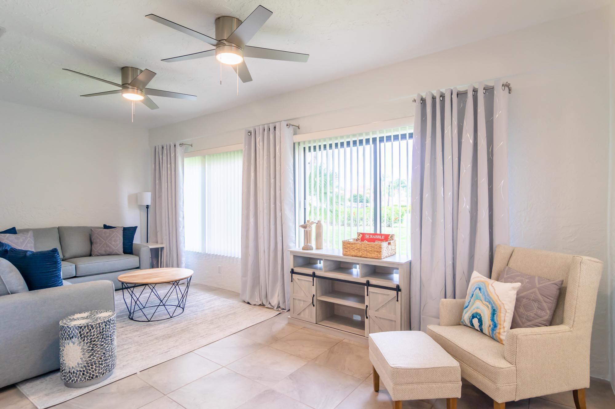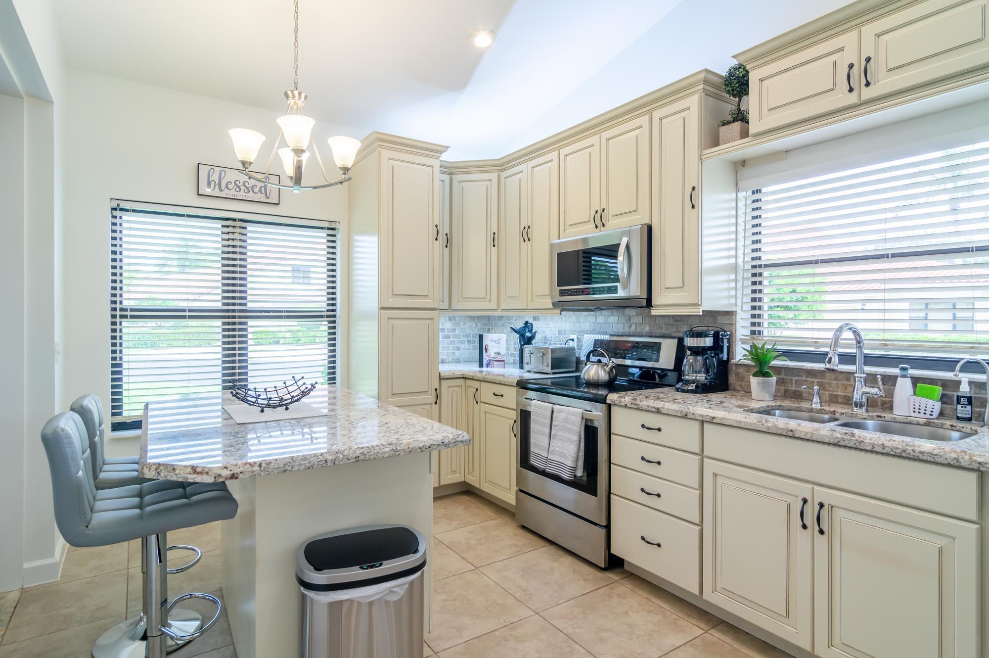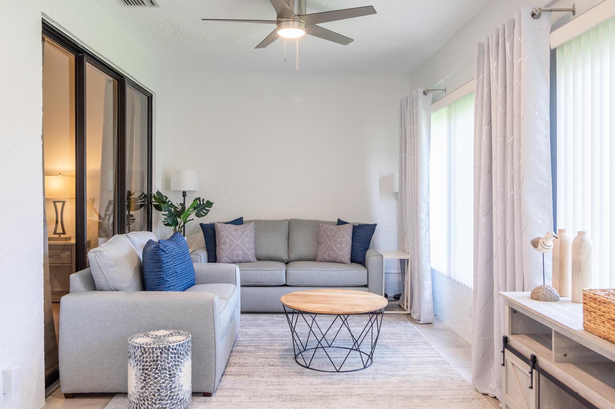 Available for Furnished annual, $3850, or $7,000/mo seasonally, Furnished only. Remodeled 3BR/2BA end-unit townhome in the sought-after community of Windermere at PGA National. This open floor plan offers volume ceilings, a bright living space with tons of windows letting in tons natural light, and a completely remodeled kitchen with beautiful neutral wooden cabinetry, granite countertops, and stainless-steel appliances. The second bedroom is located just off the living room and makes a perfect office, and the primary bedroom is spacious with a sliding glass door to the fantastic, enclosed patio offers tons of space for entertaining. New carpet in the primary bedroom/3rd bedroom, high-end LVT in the second bedroom/office. Windermere offers a community pool and pavilion for relaxation, an