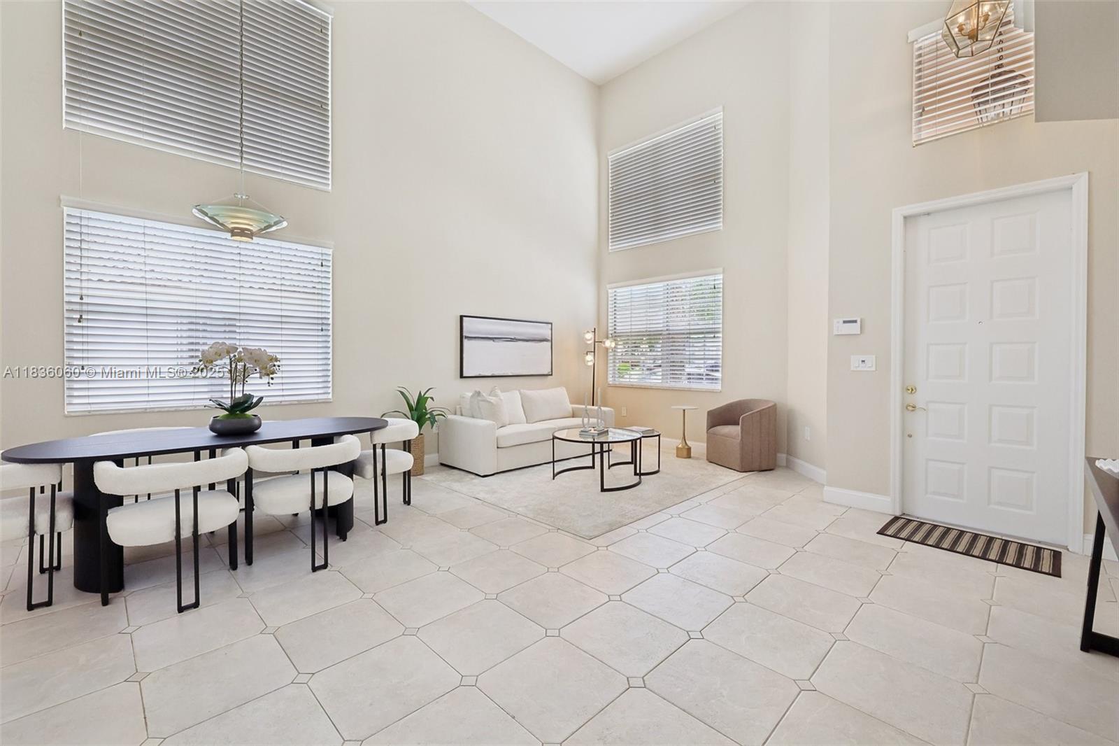 Meticulously maintained 4-bedroom, 3-bathroom home with a loft, perfectly situated on a breathtaking LAKEFRONT lot in the resort-style community of Pembroke Isles. This home features a convenient downstairs bedroom and full bathroom—ideal for guests or multigenerational living. The home boasts an upgraded kitchen with shaker cabinets as well as modern finishes in the bathrooms. Additional features include a 2018 ROOF, second floor light concrete construction that minimizes noise, freshly painted exterior & interior and an epoxy-coated garage floor. Located in a gated community with 24-hour manned security, enjoy access to amenities including 3 pools, tennis courts, gym, pickleball, playgrounds, & a spectacular clubhouse, plus cable & Wi-fi. This home is zoned for A rated schools