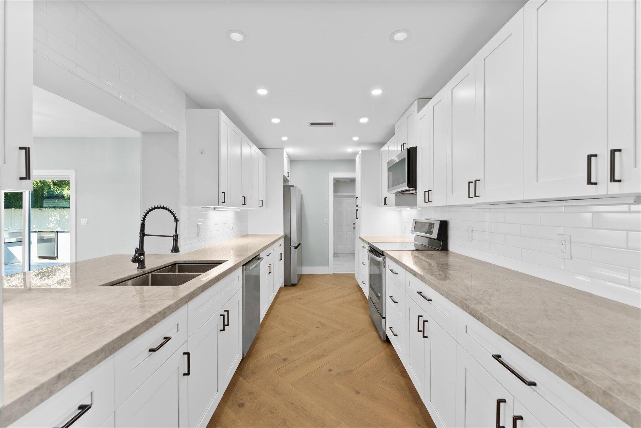 Located in Boca Raton Square, zoned for Addison Mizner, this fully renovated 4 bedroom, 2 bath home with a 1 car garage is not to be missed. Sitting on over 1/3 of an acre lot in a cul de sac, the home has been completely renovated with no expense spared. Beautiful wood like porcelain tile floors throughout, impact windows, new 4 ton A/C, bbq grill, custom fireplace, brand new washer and dryer. The backyard and outdoor space is massive, with plenty of room for entertaining, relaxing, and children and pets to play. A nature trail is located out back as well. Sugar sand park is nearby, along with town center mall, mizner park, and the home is less than 10 mins to the beach.