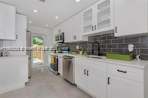 Recently redone 3/1 with huge fenced backyard. Quartz counters, lovely cabinetry, tiled throughout. Washer and dryer inside , hurricane windows and doors, great light inside. Beautiful landscaping, recessed lights and built in closets. Lawn care included in rent. Very close to Las Olas and the highway. Elevation was raised so no worries about flooding.