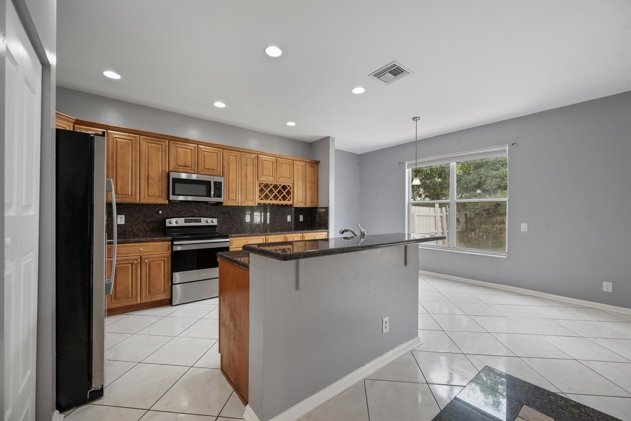 Discover this remarkable 4-bedroom, 2.5-bath residence designed with an inviting open floor plan and elegant neutral ceramic tile flooring throughout the main level. The expansive eat-in kitchen features stunning granite countertops and a functional island, effortlessly merging style with practicality. Step outside to enjoy a fully fenced yard and a screened patio, perfect for outdoor relaxation.Upstairs, you'll find beautiful bamboo flooring throughout, including a luxurious master suite that boasts a spacious bathroom equipped with a Roman tub and dual walk-in closets. This home also includes a cozy living room, a formal dining area, and a family room, along with a convenient two-car garage, all without any carpet!