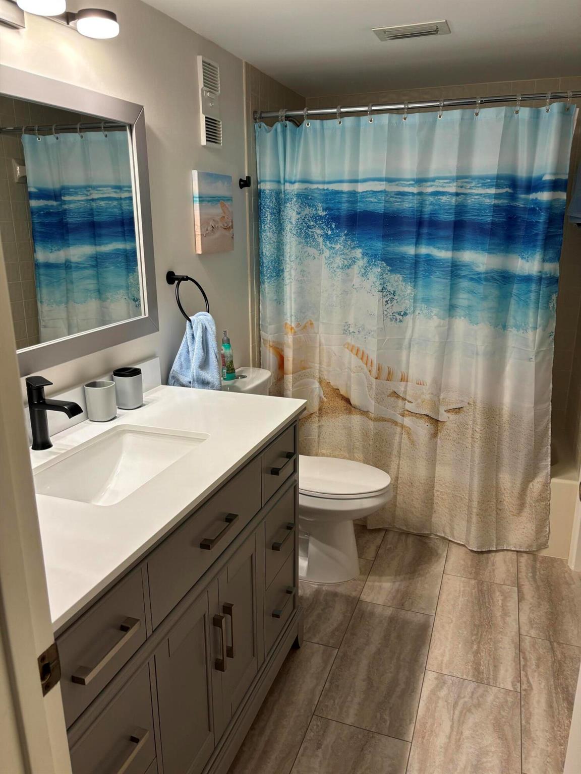 This cozy and larger FURNISHED 1230sq ft 2 bed 2 bath unit is on the ground floor in sought after Huntington Lakes. Sip coffee on the screened in patio out back with a peaceful view of the new lake. There's a garden view in the front and bringing packages in is easy as it's only a few steps to parking as it is right in front of your door! The master has a comfy king-sized bed with a large smart tv and alcove with another sofa for lounging or napping and the den has a sleeper sofa and a smart tv with another full bathroom. Both baths are fully updated! The living room has a sleeper sofa as well. There's an eat-in kitchen and larger dining area as well as a washer/dryer. This 55+ popular community has a wonderful clubhouse with many