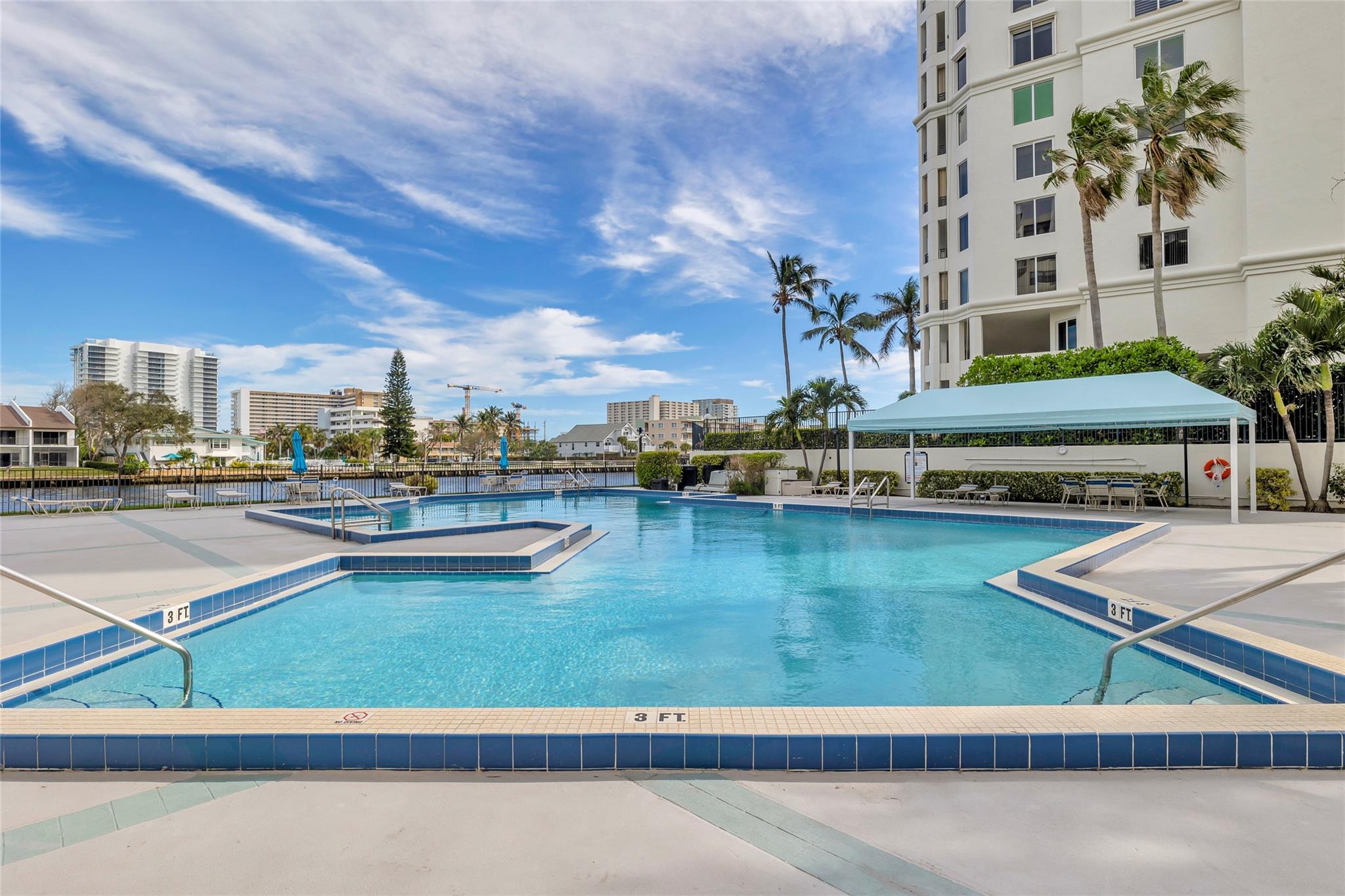 Nicely updated 1 bedroom with 1.5 baths directly on the Intracoastal waterway. Fully furnished for a seasonal rental or annual lease term. All utilities including WiFi and cable TV included for short term leases. Washer and dryer in unit. Queen size bed, nice decor throughout. High impact windows and doors. Large balcony to enjoy the breezes from the Ocean. Intraocoastal views from the balcony. Garage parking. Building is secured with fitness center, dry sauna, BBQ grills and huge heated pool that is directly on the Intracoastal. VERY close to the beach, no need to drive there. SHOWS WELL! EAST facing with A LOT of natural light!