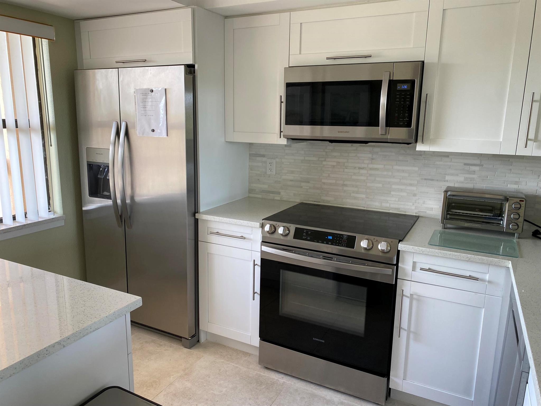 Beautiful Remodeled 2BR Corner Residence in Delray Racquet Club. Designer furnished and decorated with Quartz Countertops and White Shaker Cabinets, SS Samsung Appliances,Light Oak Flooring and New Impact Windows and Sliders. New Full Size Washer and Dryer.Newly tiled Patio overlooking pool,tennis courts,and tropical landscaping.Nice 4th floor corner patio breeze with view to oceanfront properties.Resort- like community with 24 Tennis Courts,2 Pools w/spas,New Fitness Center,Lakes with walking paths.1 mile to Beach,5min to Downtown Delray with shopping,dining,and entertainment!Walk to Whole Foods,Target,Starbucks.Bike to the Beach!Fully equipped with 3 Smart TVs,Cable and WiFi and more! Exceptional Vacation Home!