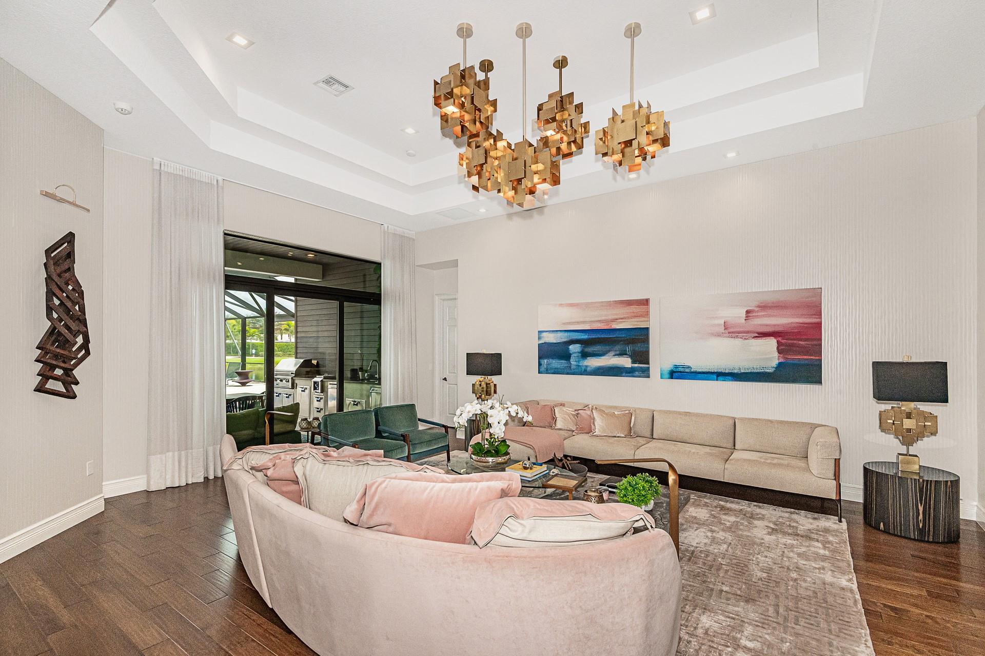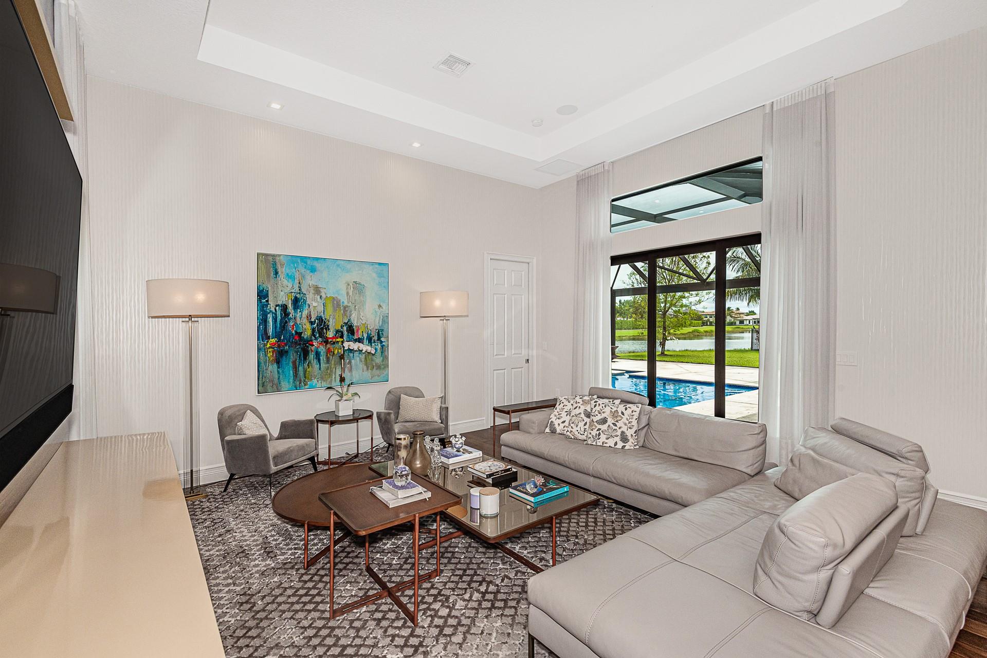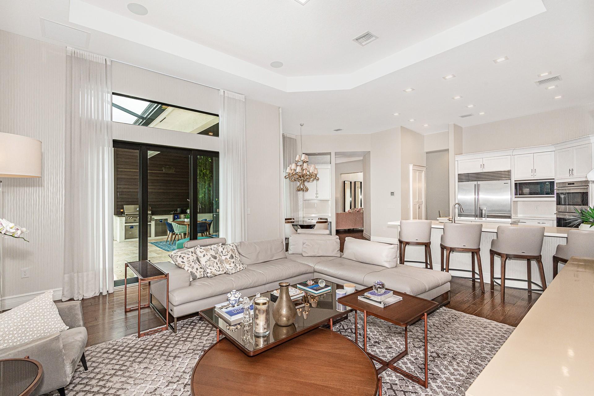 Eminent famed Seven Bridges gated community! Impressive Charletston model-Largest One Story Ranch! True 5/5 custom composition! Fully furnished by esteemed Brazilian designer! ORIGINAL OWNER spared no expense in furnituree & home upgrades! Soaring 12' & 14" ceilings throughout! Home generator water filtration system, Toto Toilettes, Engineered Wood Floors, Customized Closets. Sprawling oversized pie shaped lot, circular driveway on cul-de-sac st.! Outstanding entertainer's backyard -designer salt water heated pool features sun tanning shelf, swim up bar & large jacuzzi! Outdoor covered kitchen-BBQ, sink, refrigerator, ice maker, cook station with range. Sprawling covered outdoor dining area overlooking pool & wide serene canal waterview!