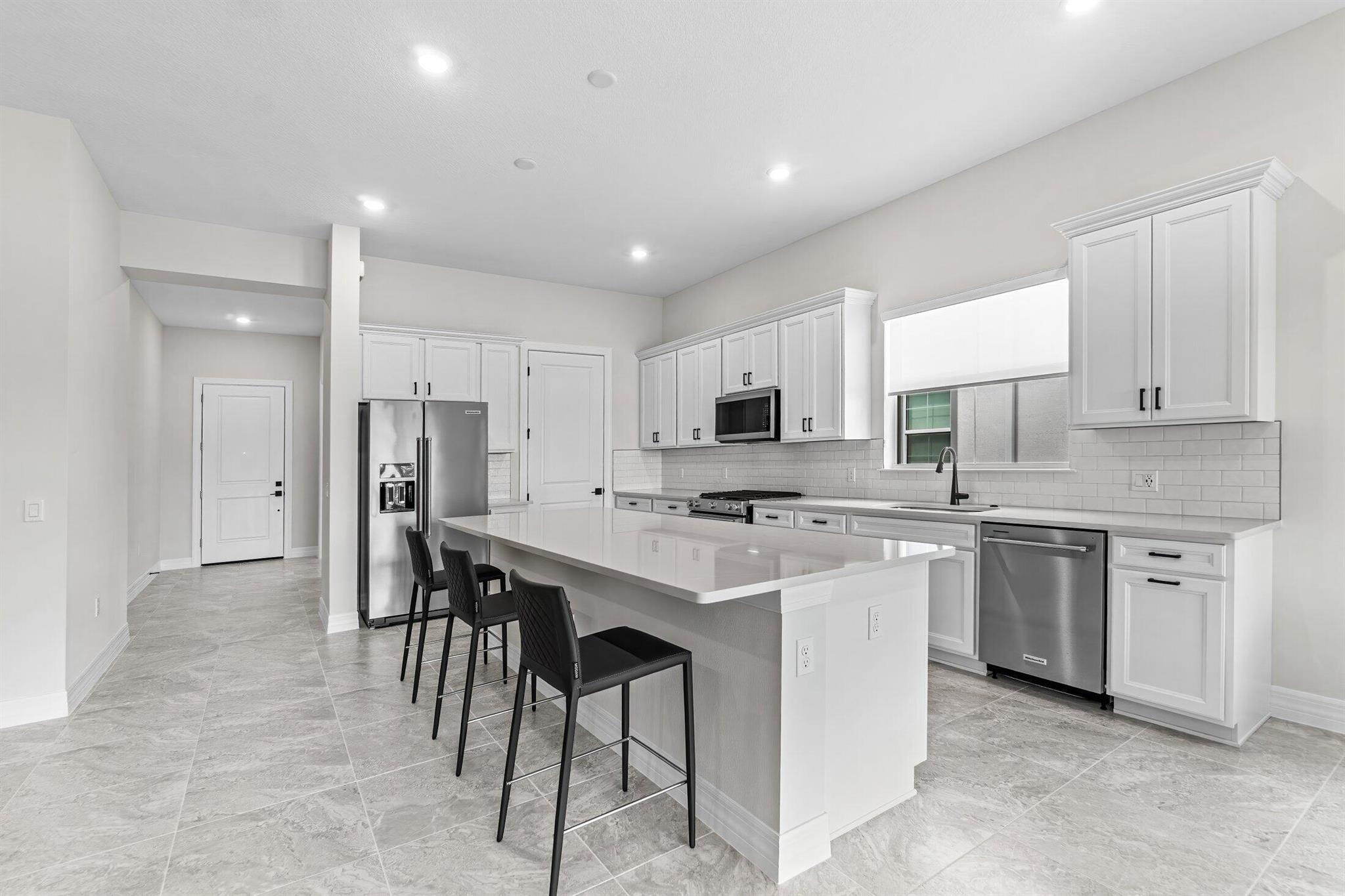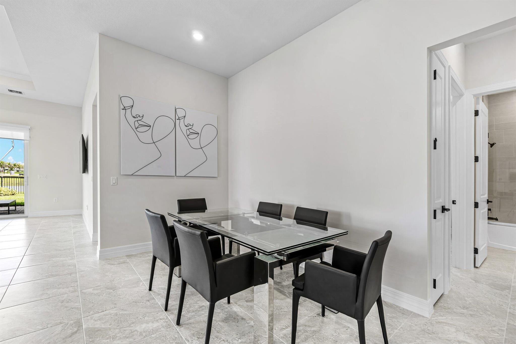 Waterfront/luxury/fully Furnished New Construction in PBG stunning new construction waterfront residence offersb3 spacious bedrooms plus a versatile den/(playroom/office)4th bedroom. Designed with a bright, open and airy floor plan perfect for modern living and entertaining. Located in a desirable new neighborhood Avenir. This professionally decorated fully furnished home is move in ready. Enjoy peaceful water views, elegant finches and seamless indoor-outdoor living. (Screened lanai) The community features a resort style clubhouse with tennis, pickleball and club room