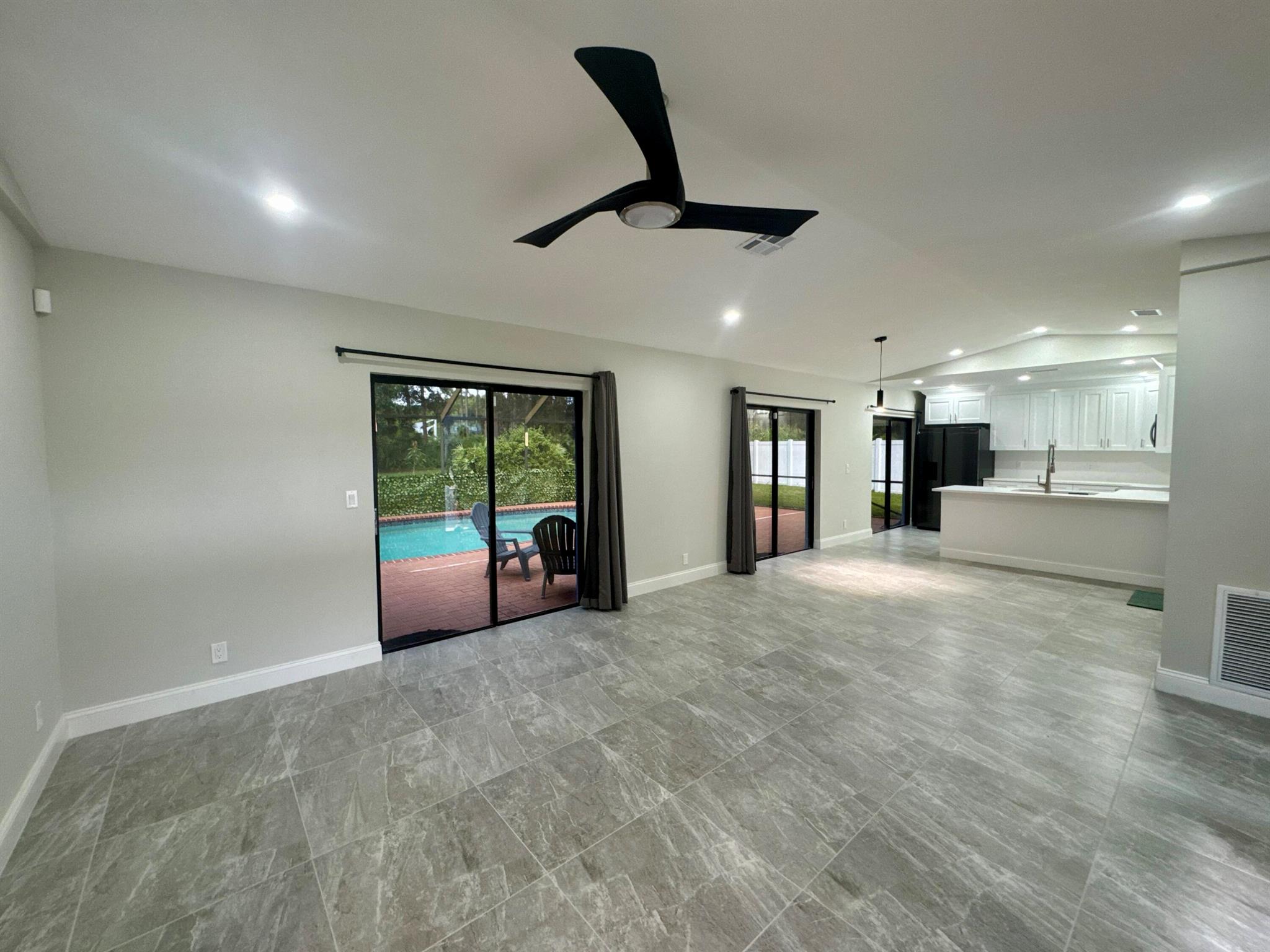 Beautifully updated 2BR/2BA pool home in the sought-after Lake Forest South community of Delray Beach. This move-in ready residence offers tile flooring throughout, a remodeled kitchen with granite countertops, brand-new stainless steel appliances, and fresh exterior paint. The open living area flows seamlessly to a screened patio and private pool -- perfect for relaxing or entertaining. Additional features include tinted sliding glass doors for energy efficiency, a mini-split system in the primary bedroom, a new washer and dryer, and a 2-car driveway. All appliances are new. Pet-friendly. Ideally located near shopping, major roads, and Downtown Delray. The home backs up to Barwick Park with no rear neighbors. Available now and easy to show