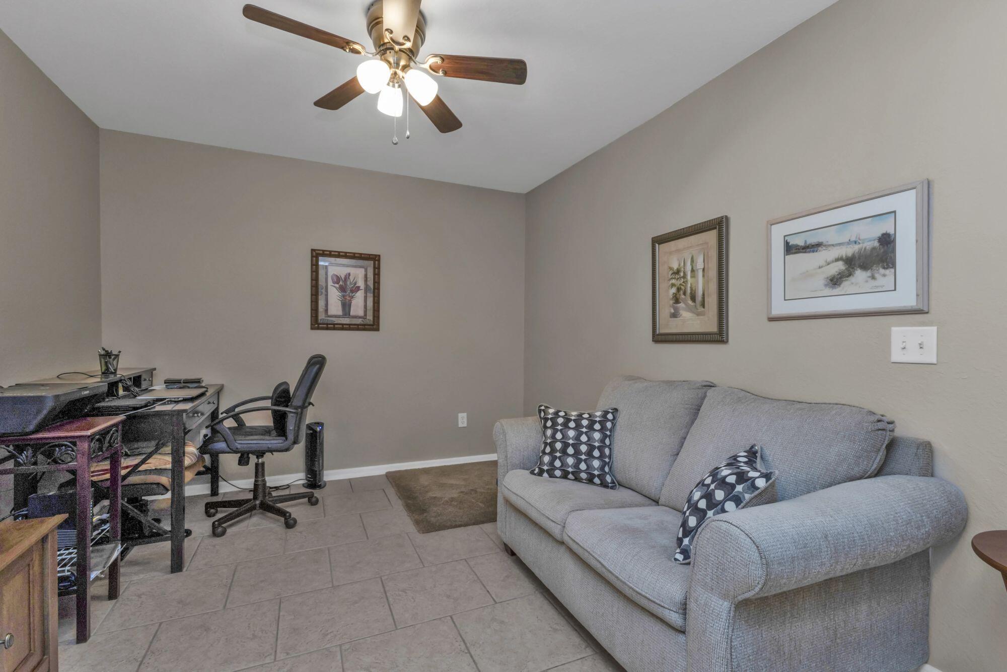 Excellent Location. Year around rental and is also offered for minimum 5 month Seasonal. This Private Community is very desirable and very clean in North Port, where you are very close to everything. Beautiful 2/2 condo with Den/office, or 3rd bedroom, open layout, vaulted ceilings, with screened-in patio, FULLY FURNISHED (if you can use it or we can remove it), unit includes a private, detached one-car garage ideal for extra storage, a vehicle, or beach gear. Residents enjoy resort-style amenities including a heated pool, clubhouse, fitness center, library, and walking path tucked behind a gated entrance and just minutes from shopping, restaurants, medical services, and Gulf beaches. Great unit for the price, must see. Pets are allowed