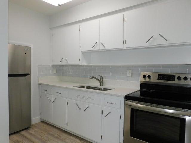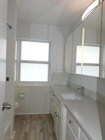 Welcome to downtown Lake Worth Beach and The Ivy! This beautiful extra large one bedroom apartment with walk in closet is located walking distance from the downtown strip and less than 1/2 mile to Lake Worth Beach. The beautiful courtyard is perfect for relaxing each morning with coffee from the new cafe which is steps from your door. This 2nd floor unit which spans the whole top floor has been beautifully updated with wood tile floor, all new kitchen with brand new appliances, quartz countertops, brand new bathroom vanity with shower/tub combo & freshly painted! It has an open kitchen so you can easily entertain. Impact windows Right next to new million-dollar condos. Coin operated washer and dryer on premises! Walk to the beach & Bryant Park! Come see what Lake Worth Beach is all about